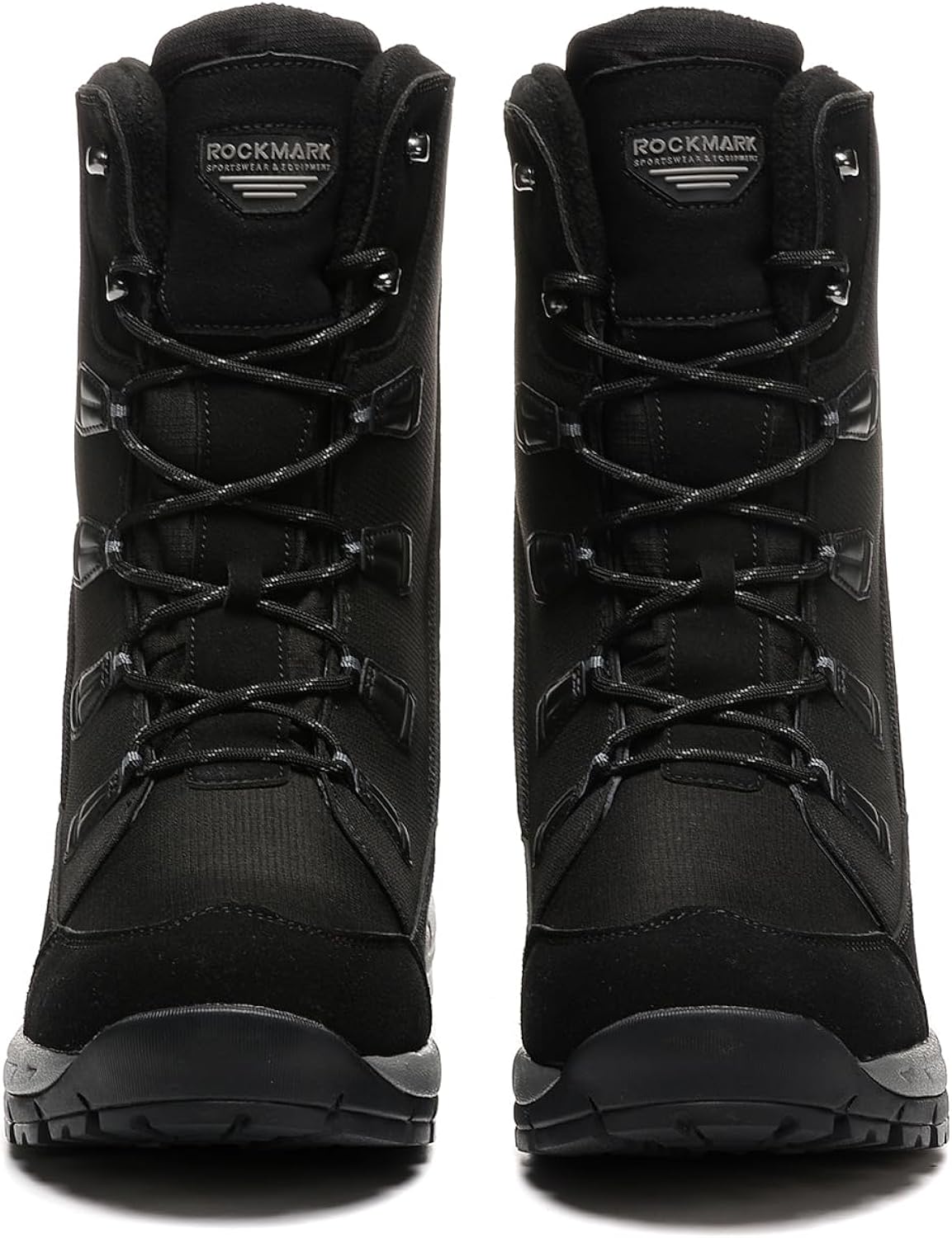 ROCKMARK Mens Winter Mid-Calf Snow Boots Fur Lined Warm Waterproof Slip On Outdoor Athletic Snow Boots