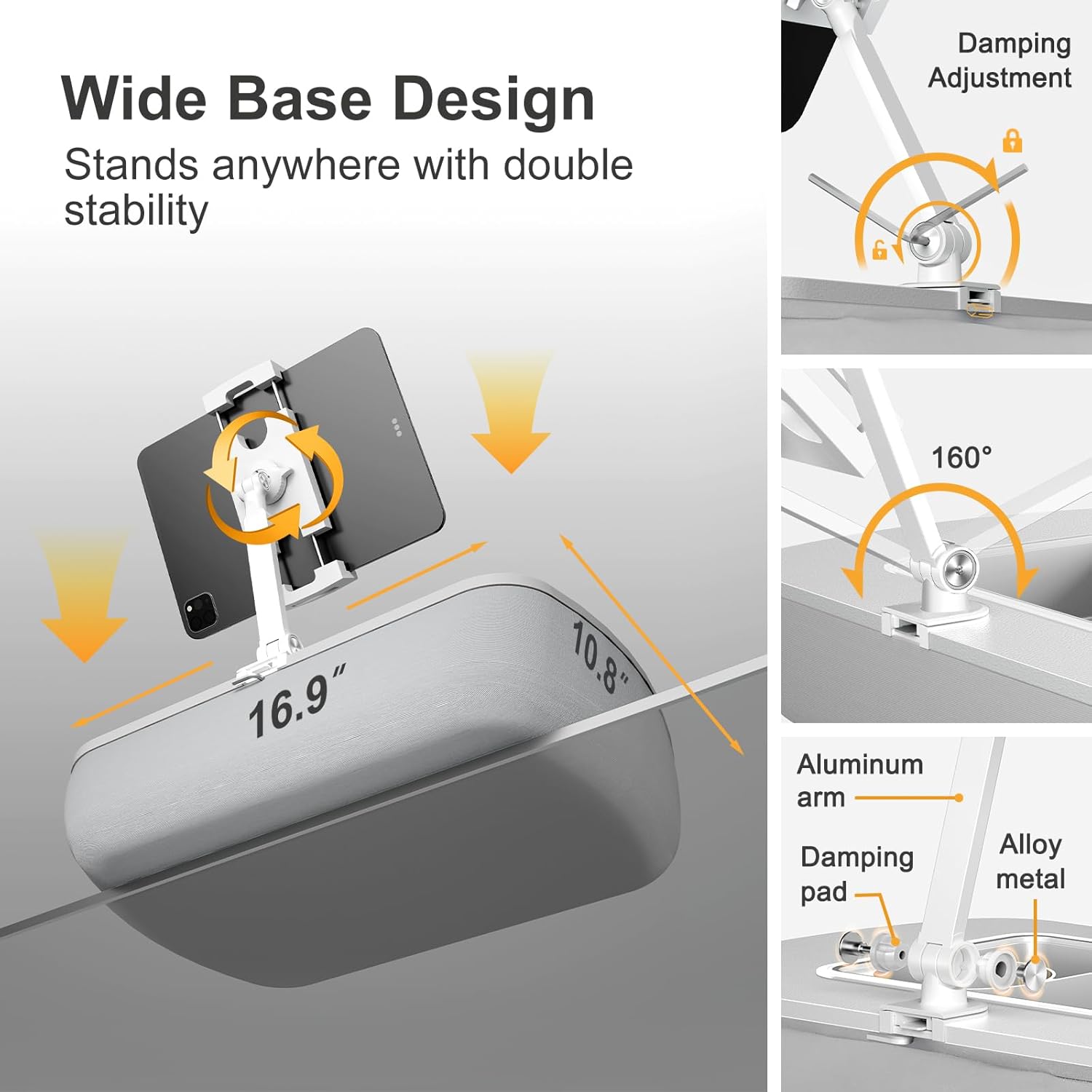 【Wide Compatibility】 The adjustable clip supports devices from 4.7 to 9.8 inches, accommodating 4.7-13 inch Kindle, iPad, Tablet, iPhone, and Portable Monitors.