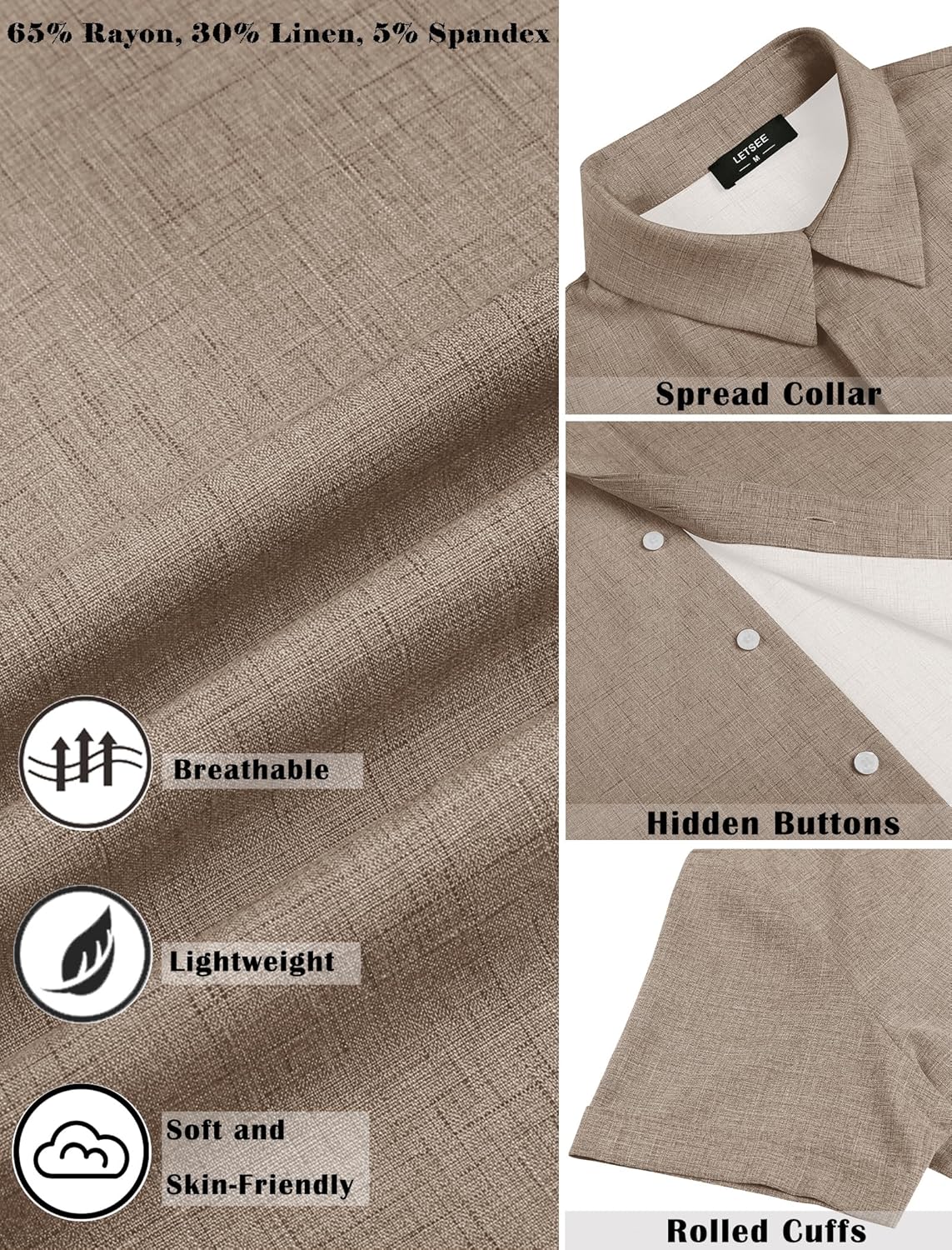 PREMIUM LINEN FABRIC --- Men's casual button down shirt is made of premium linen blend fabric, which is lightweight, breathable, soft and comfortable, and anti-shrinkage. Keeping you cool and comfortable all day.