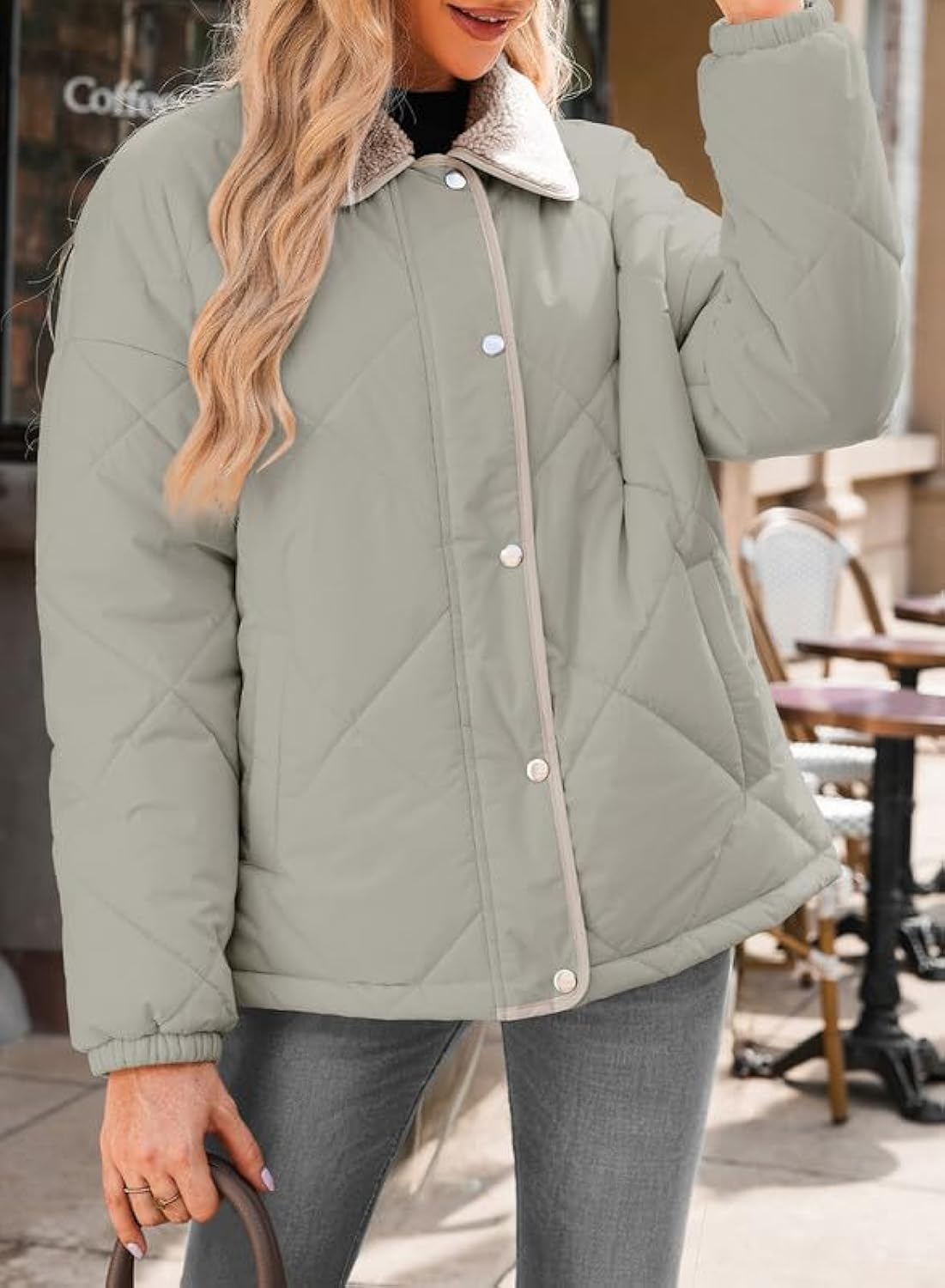 Dokotoo Women's Winter Casual Quilted Jackets Long Sleeve Button Down Puffer Jacket Padded Outerwear Coats