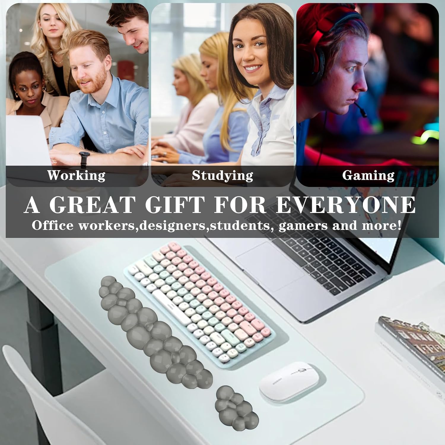 【 Packaging Content 】 This stylish gift box includes a cloud wrist rest for the keyboard and a wrist rest for the mouse. Very suitable for office workers, gamers, students, designers, and other long-term computer users