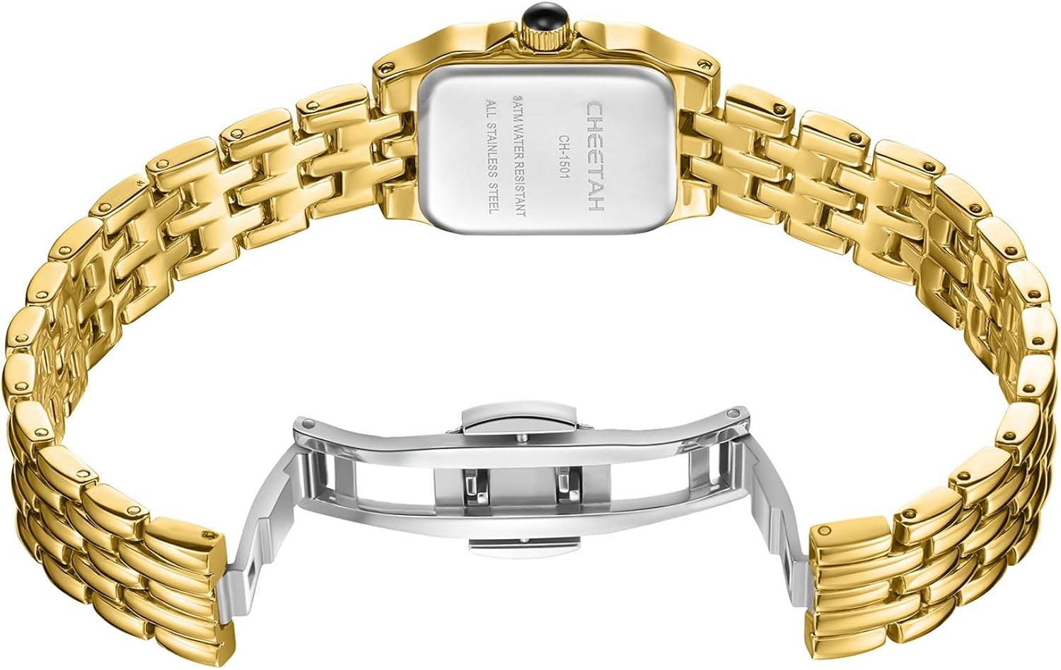 WATCH MATERIAL: The gold tone watchband is designed for comfortable long-lasting wear; imported Japanese quartz movement offers reliable timekeeping. 3ATM waterproof can meet daily use demand