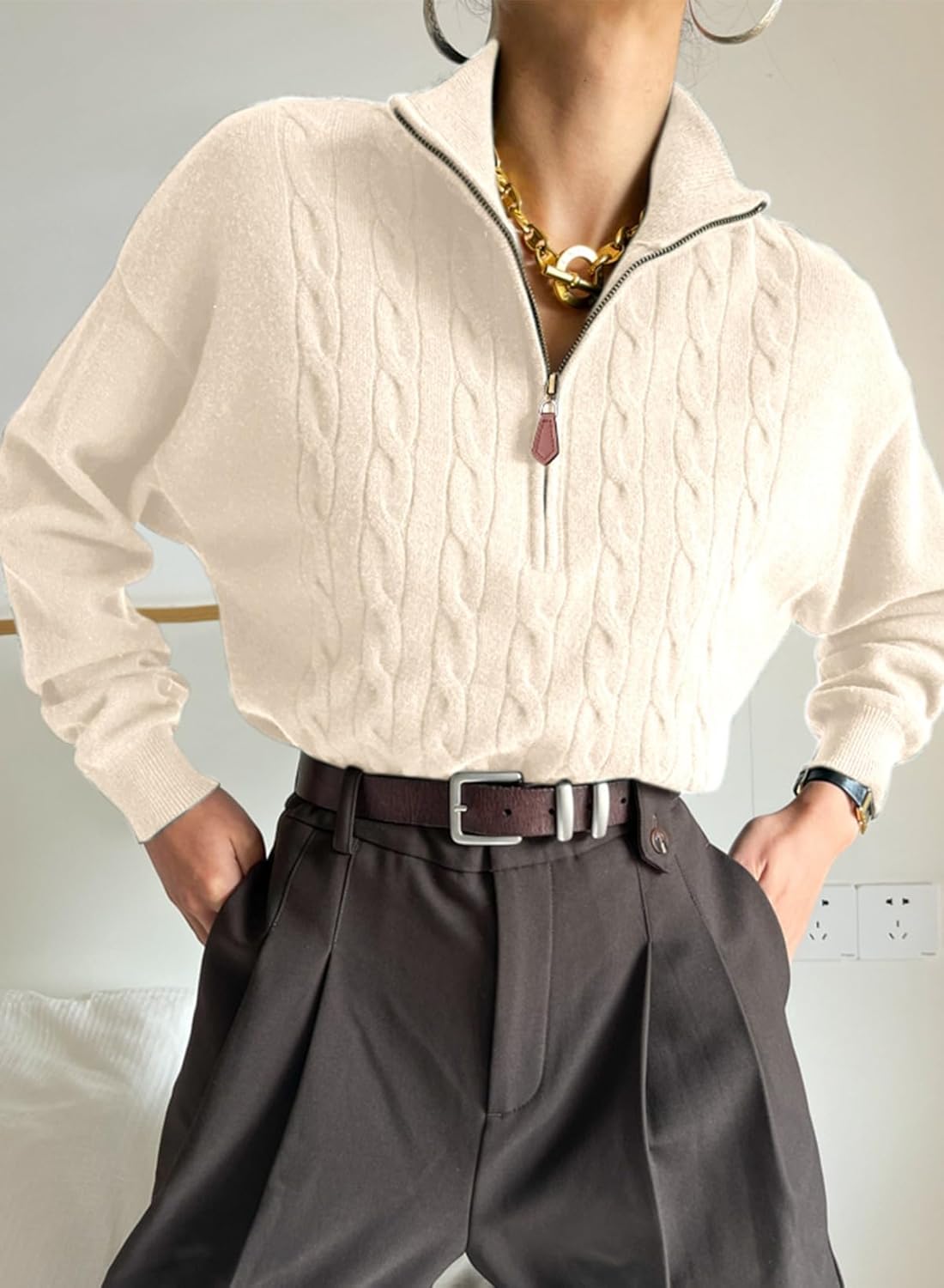 Feature: This ribbed sweater top features v neck, zipper design,drop shoulders, and a relaxed fit. With its basic solid color and elegant simplicity, it never goes out of style.