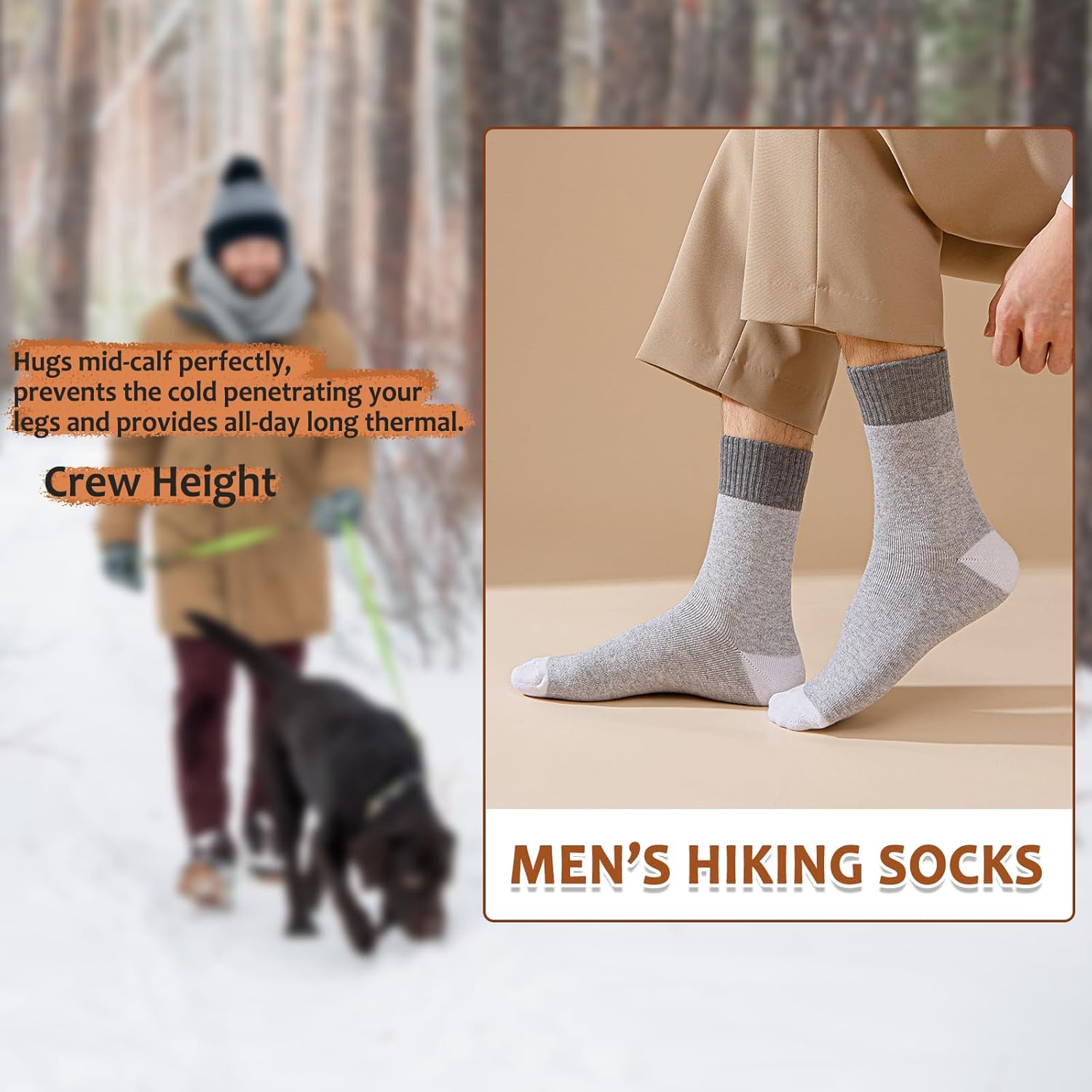 【Stay in the Warmth】These mens thermal socks designed with soft terry inside, will lock the heat perfectly to keep your feet warm and dry. Each comfortable pair of wool boot socks for men gently wraps around your feet to keep them warm and cozy all winter long.