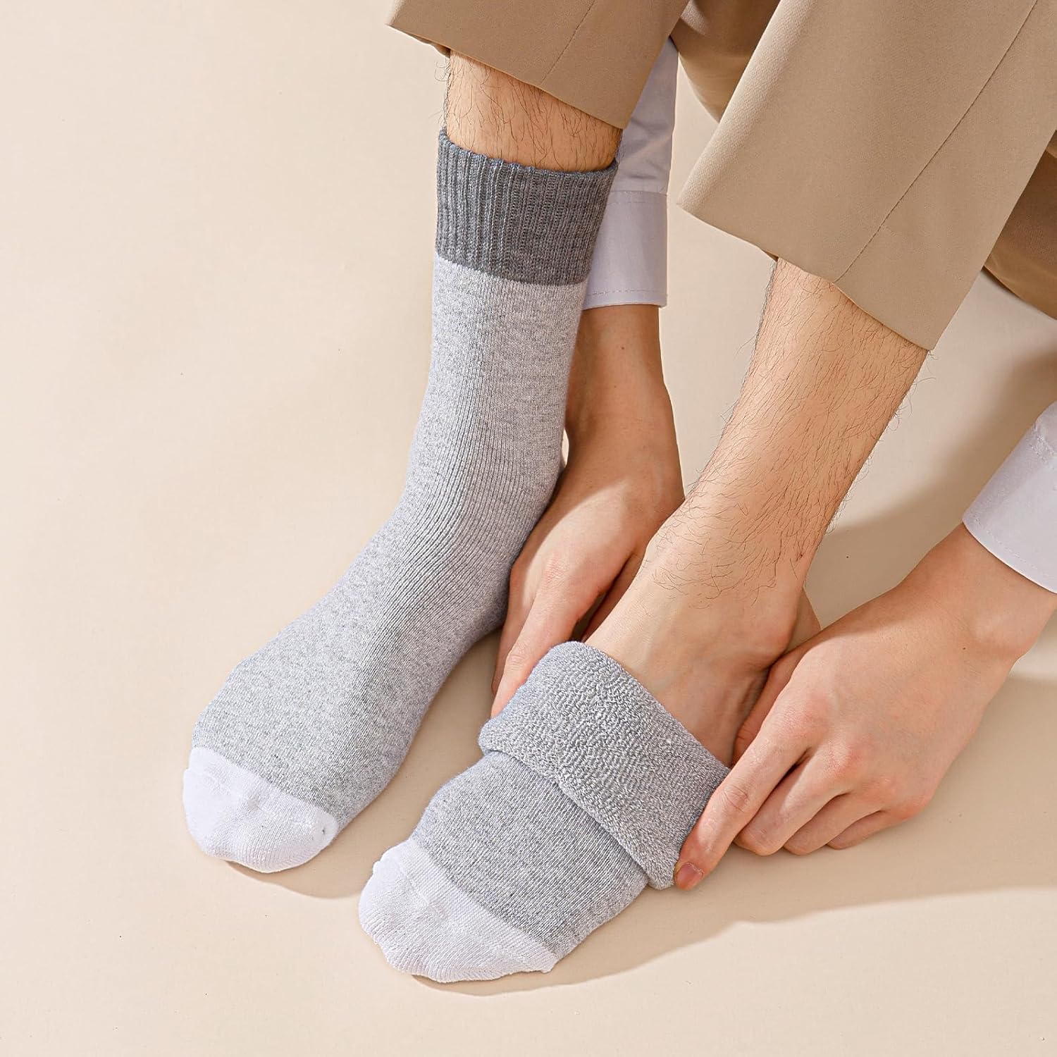 【Size Care】Comes with 5 pairs of classic and stylish men's wool socks, suitable for US men's shoe sizes 7-12. The cuff, heel and toe of these warm socks for men are full of elasticity, which protects mens feet and legs effectively without any binding feeling.