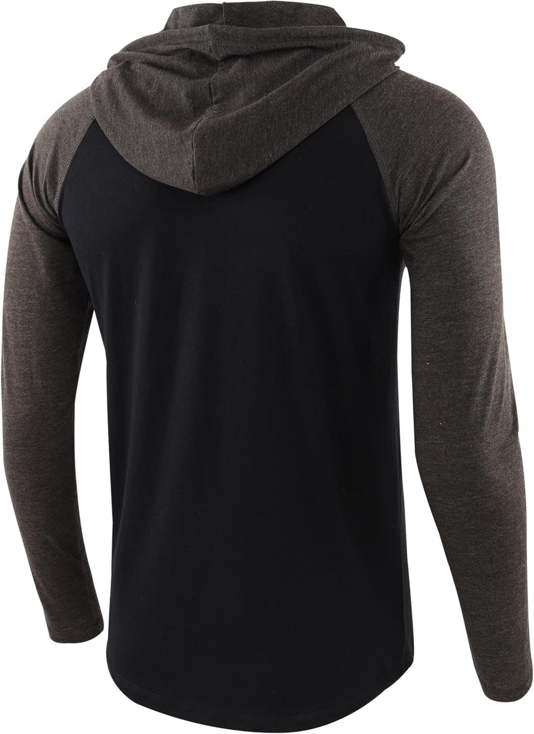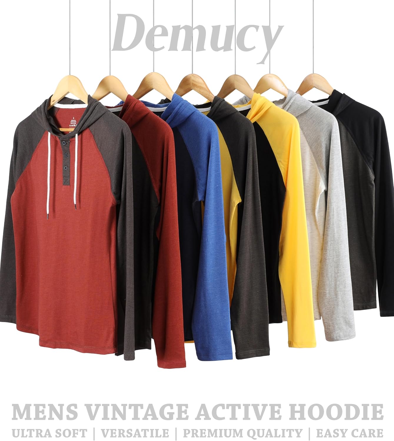 Stylish Design: The Demucy Men's Hoodies feature a trendy Henley neckline and raglan long sleeves, making them a fashionable choice for any casual outing or athletic activity.