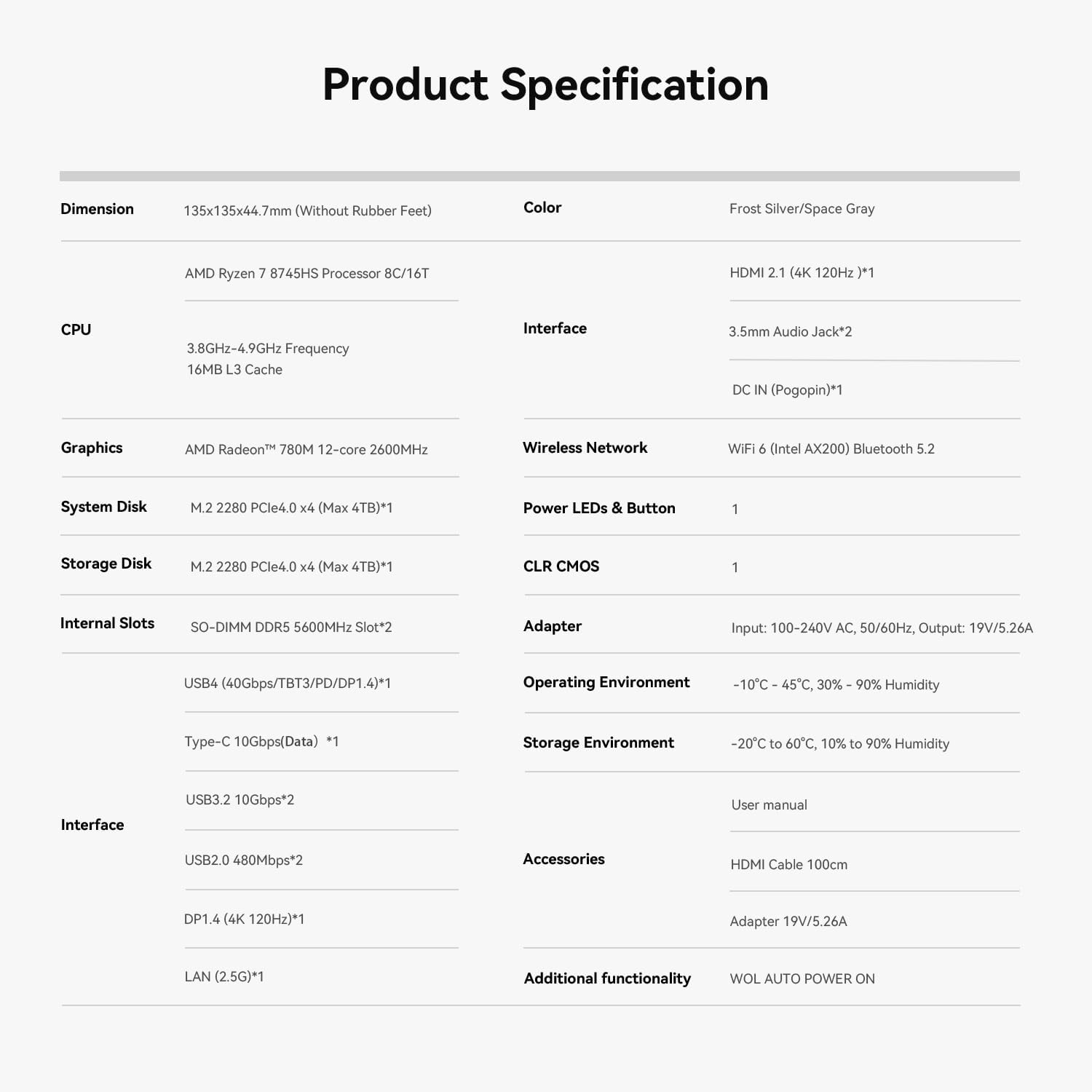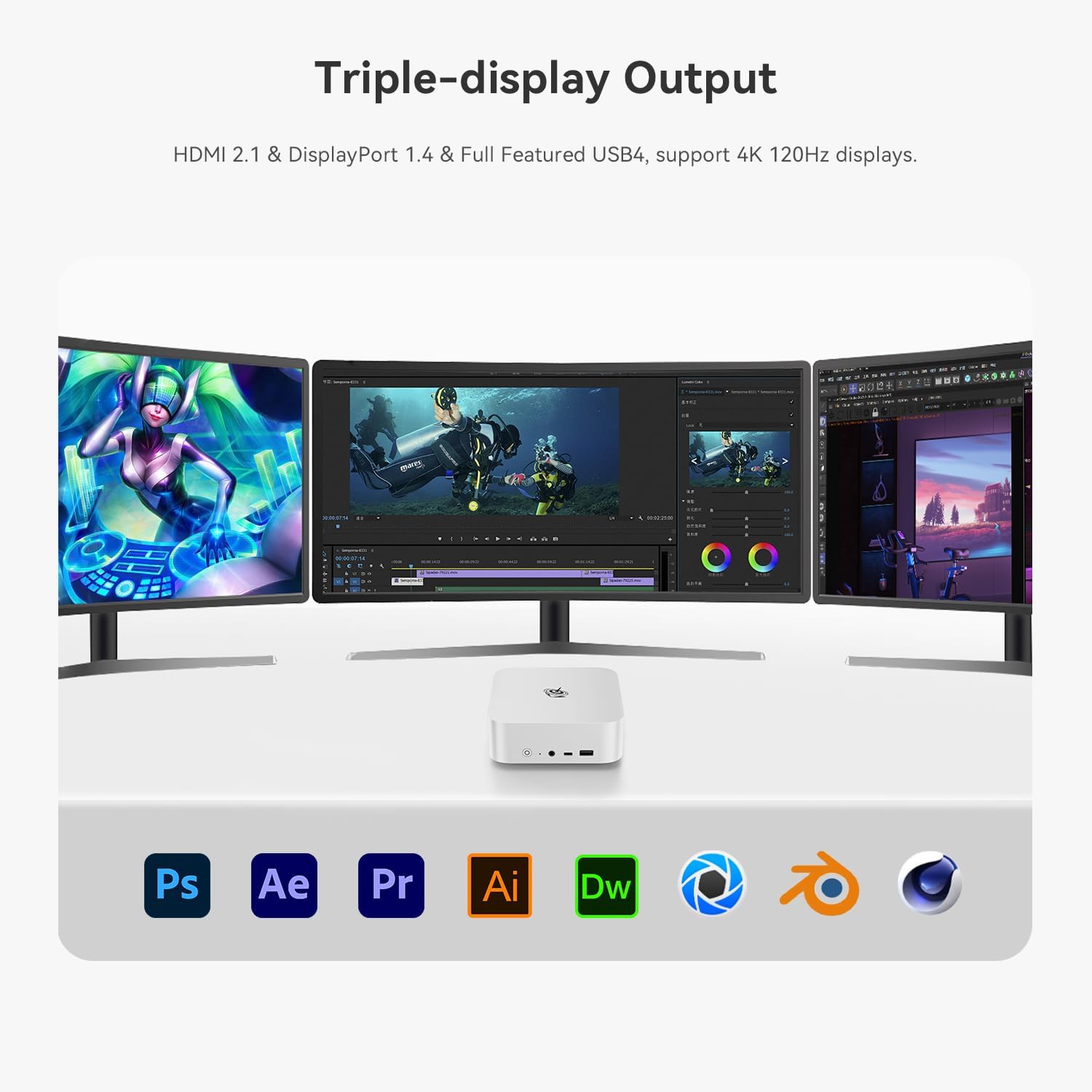 ??【Super Cooling】Beelink Ryzen mini pc 8745HS uses a copper tube + fan cooling combination with high specification cooling silicone grease to allow for faster heat transfer, which can effectively reduce the CPU temperature in high CPU load states. At the same time, it does not reduce the CPU's benchmark computing speed; the first choice for Mini Gaming PC !!!
