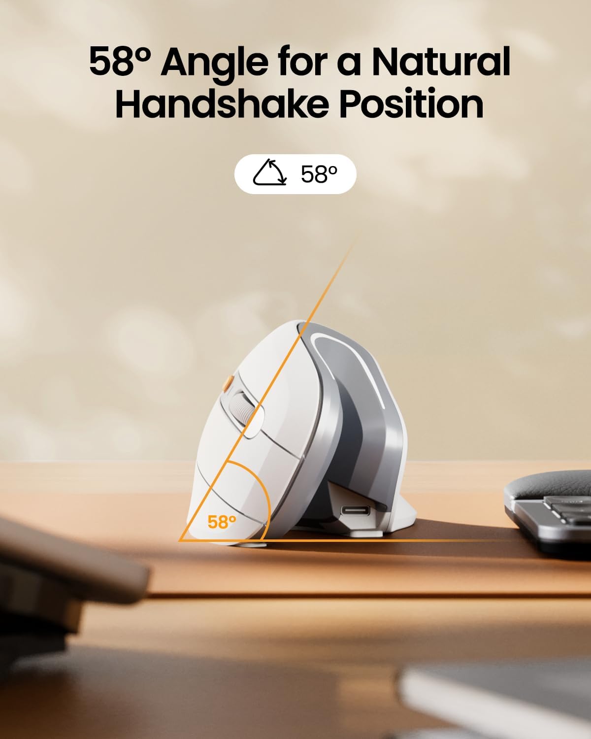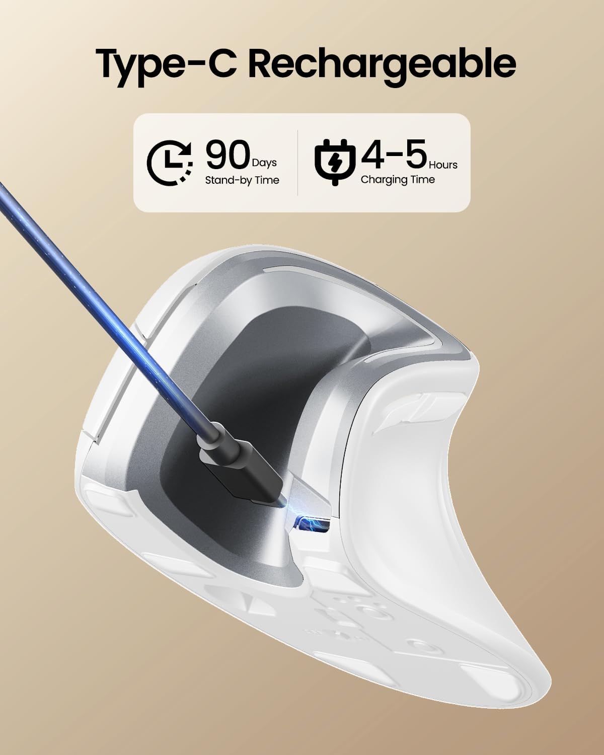 Rechargeable Ergonomic Mouse: The Bluetooth Vertical Mouse has a built-in 500mAh Li-Ion battery that can be conveniently recharged using the included Type-C cable