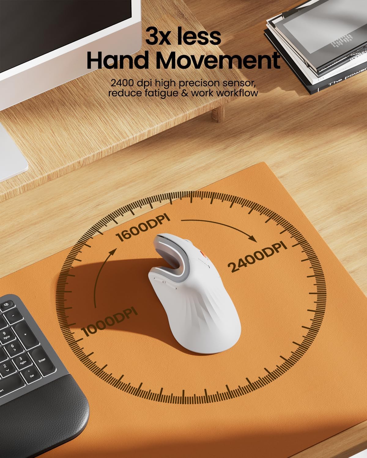 Silent Clicking Sound: Our vertical mouse's whisper-quiet clicking helps you focus on what's important without any noise distractions. Therefore, it is perfect for shared workspaces such as offices or libraries
