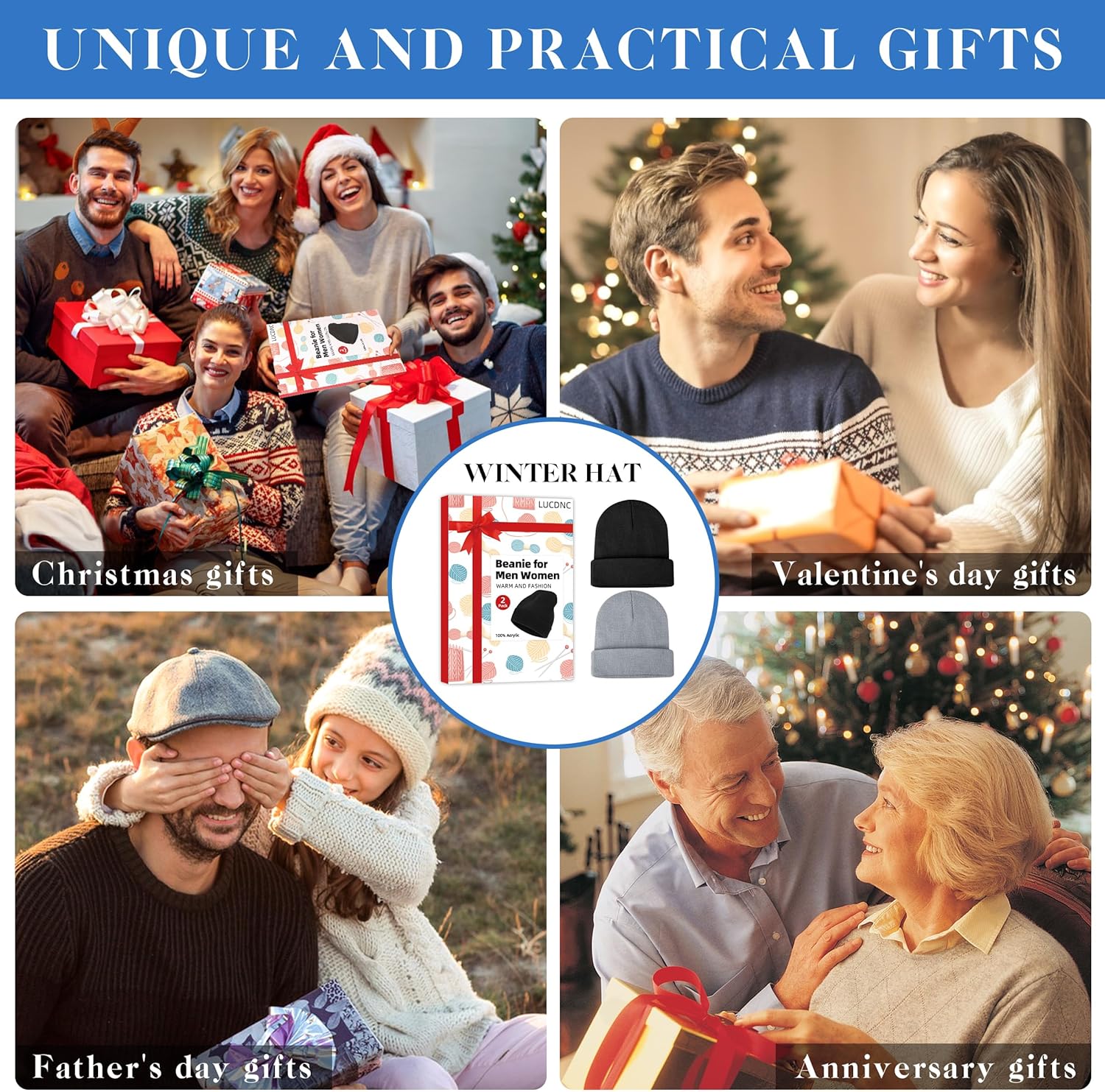 lucdnc Beanies for Men Women 2 Pack Fall Winter Men's Hats Unisex Warm Knit Skullies Beanies Soft Ski Caps