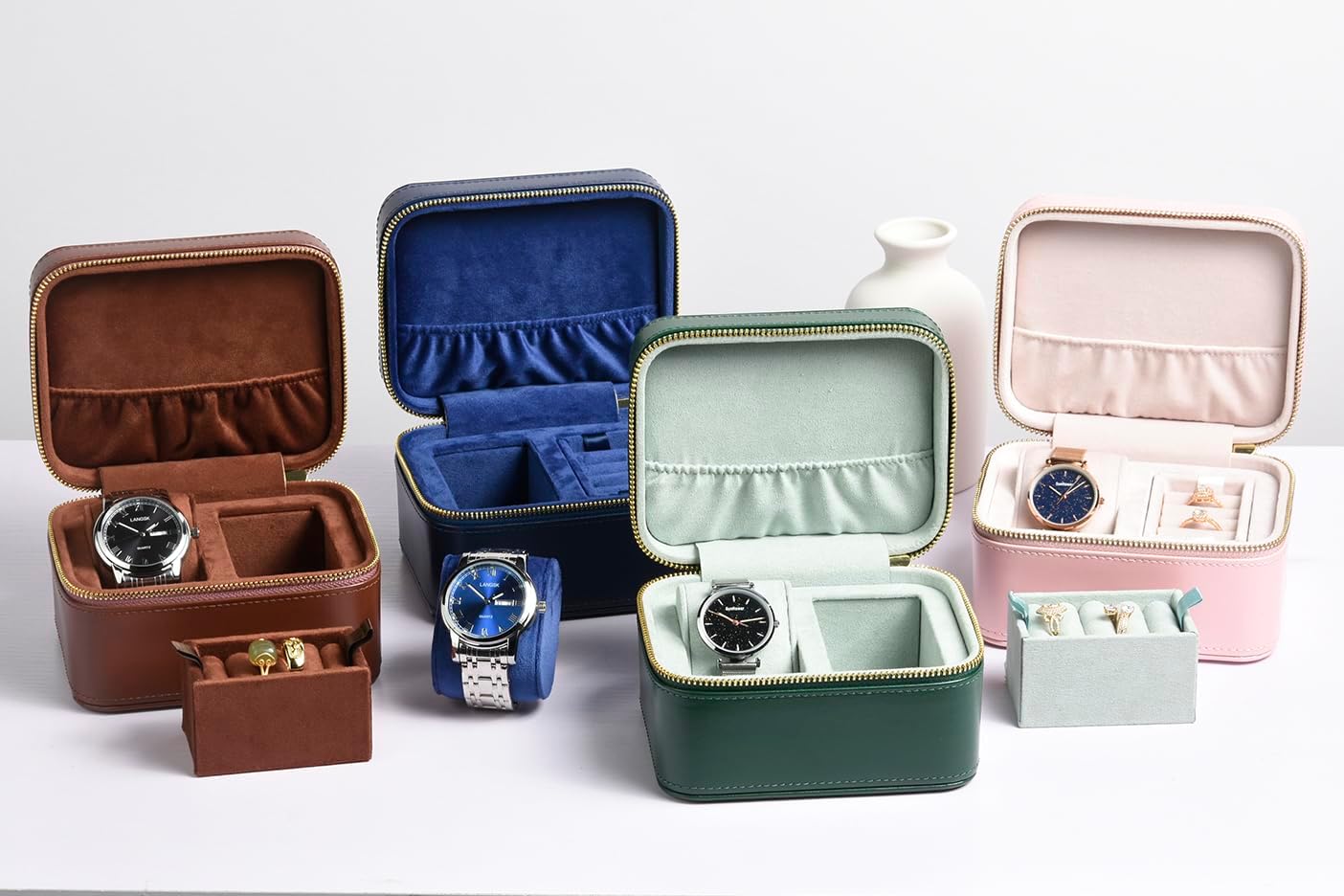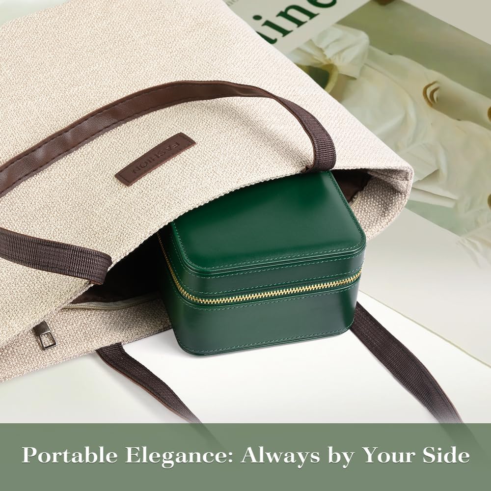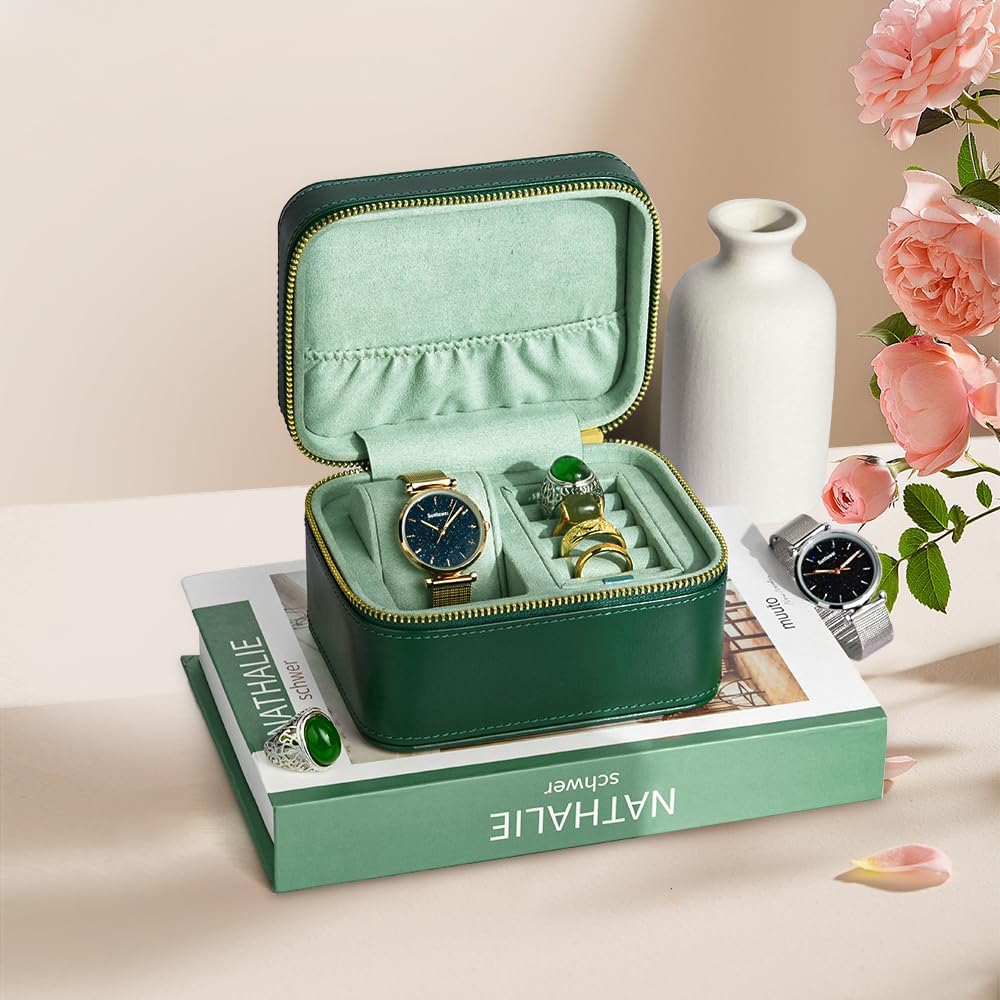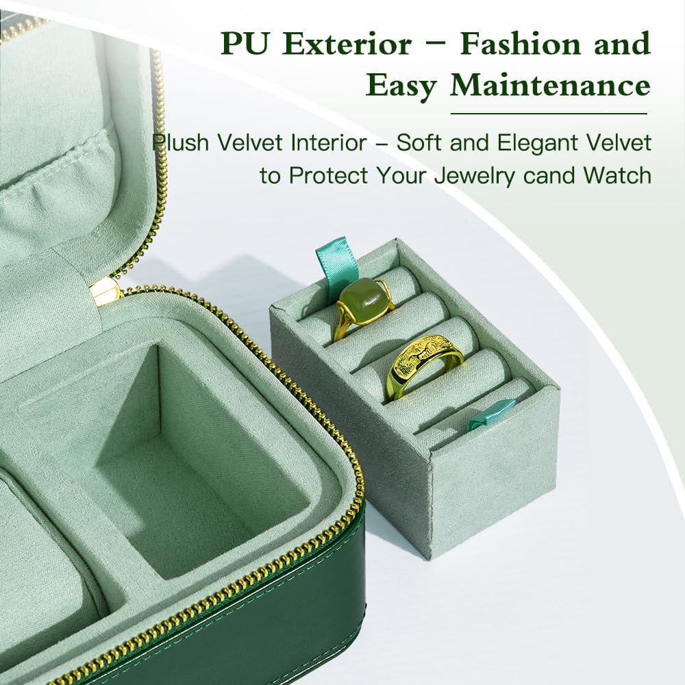 LUXURIOUS MATERIAL: The Jewelry Case features an outer surface made of PU leather, which is not only fashionable but also effortless to maintain. The interior is lined with soft and luxurious velvet fabric. The plush velvet interior, with its soft and elegant texture, provides the ultimate protection for your precious jewelry and watches.