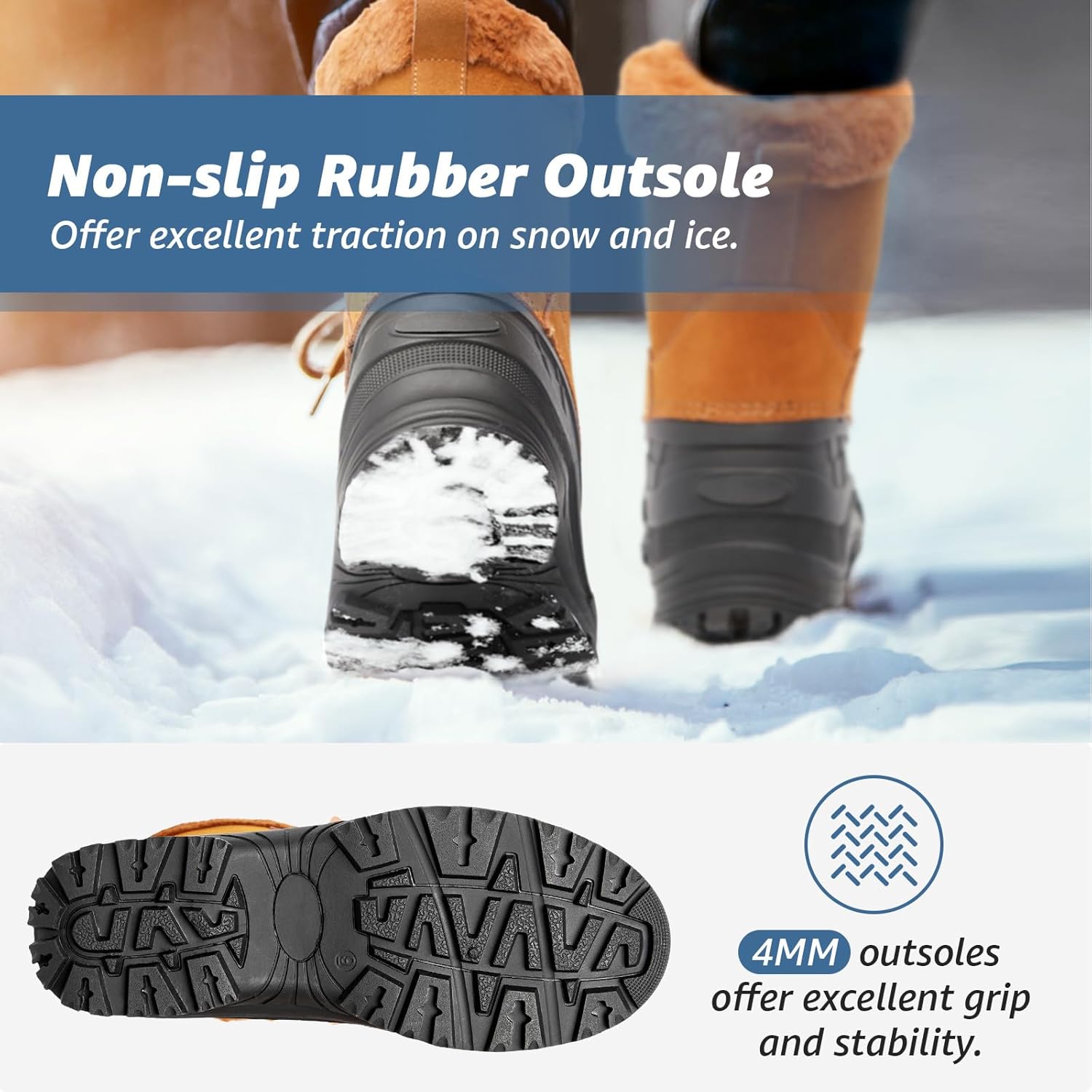 Anti-Slip Rubber Outsole: Rubber outsole with tire-style traction lugs provides exceptional grip on ice, snow, and wet surfaces, so you can walk, hike, or work outdoors with confidence and safety