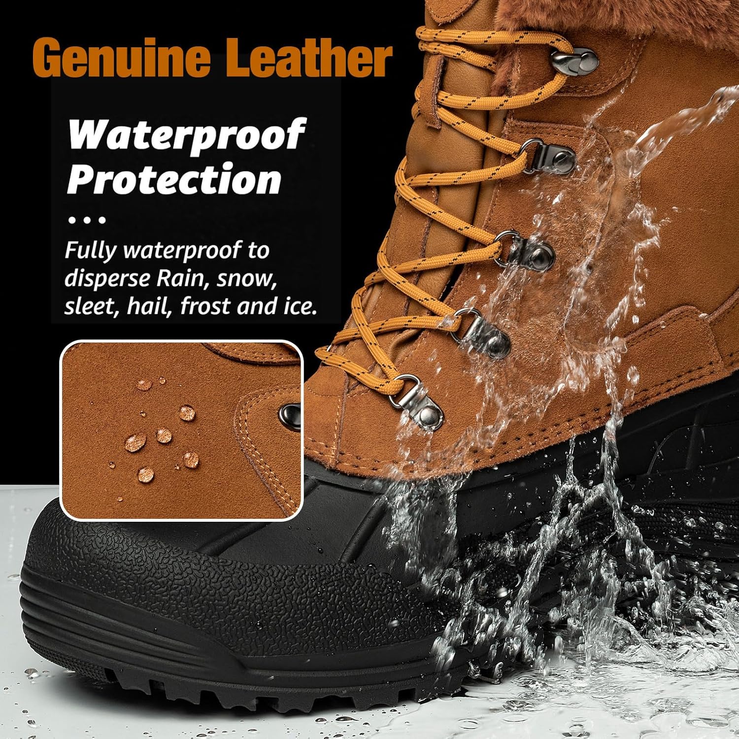 Waterproof & Genuine Leather: Crafted with durable waterproof genuine leather and suede, keeping your feet dry and comfortable in snow, slush, or rain. Perfect for daily commuting, outdoor work, and winter adventures