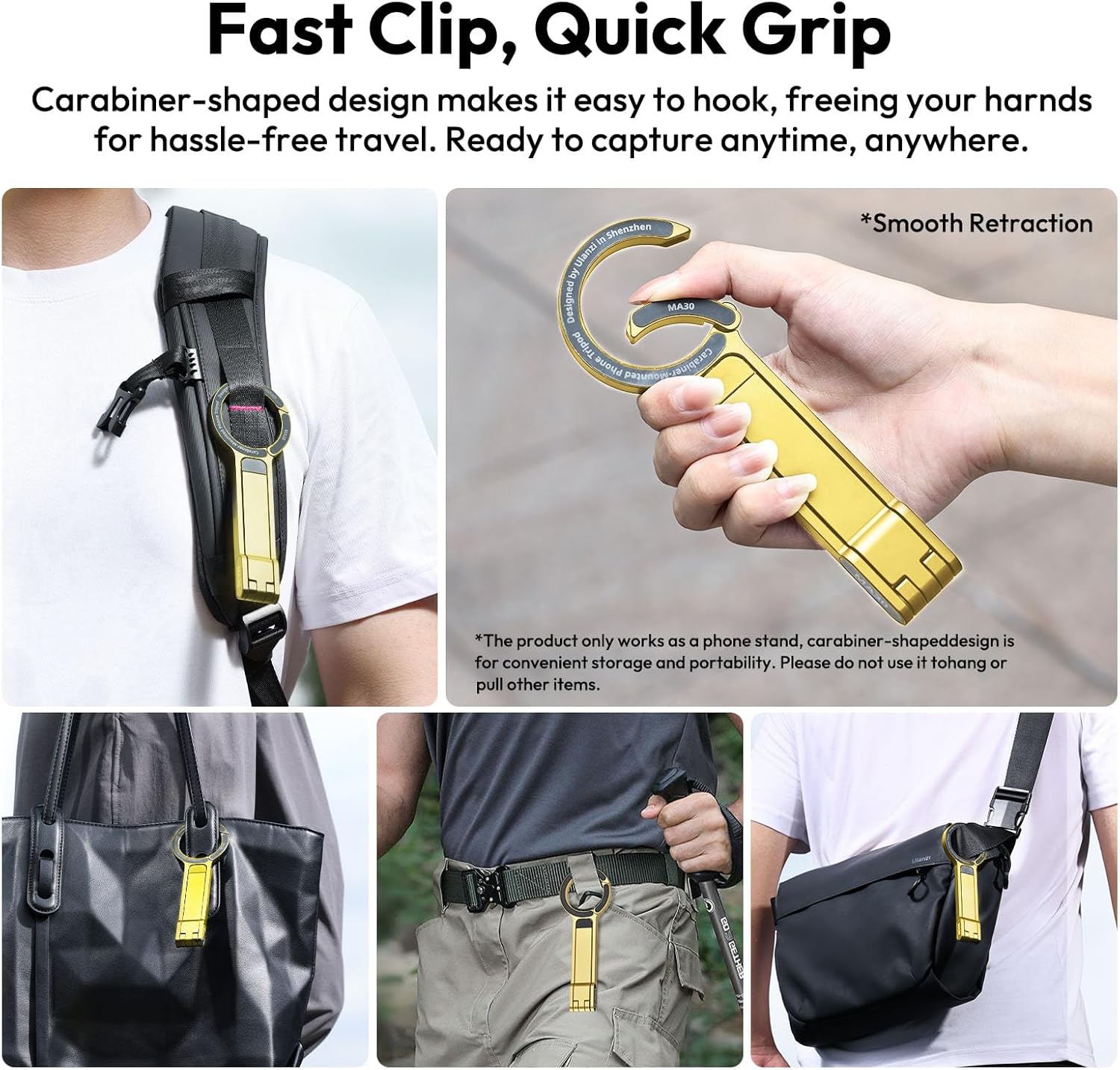 Fast Clip, Quick Grip: Carabiner-shaped design makes it easy to hook, freeing your hands for hassle-free travel. Ready to capture anytime, anywhere.