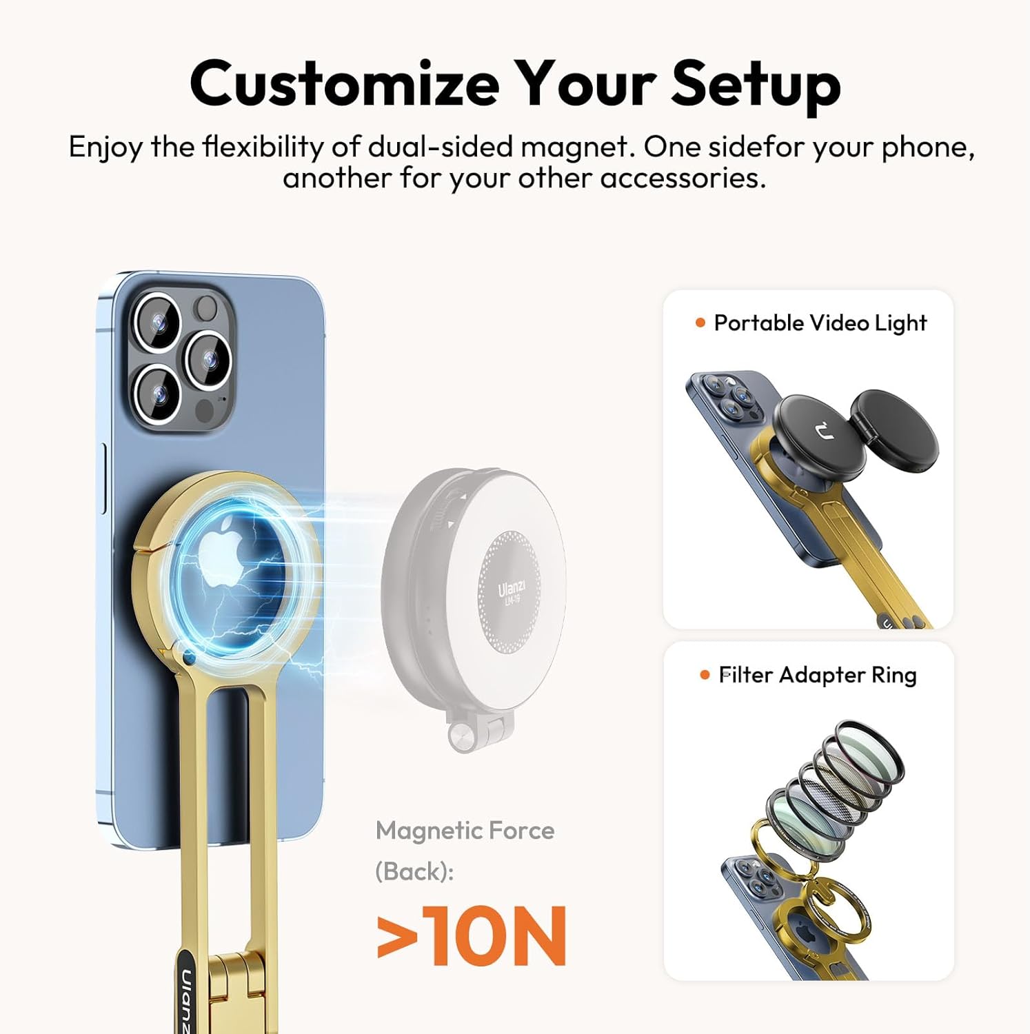 Customize Your Setup: Enjoy the flexibility of dual-sided magnet. One side for your phone, another for your other accessories. - Magnetic Force (Front): >12N - Magnetic Force (Back): >10N