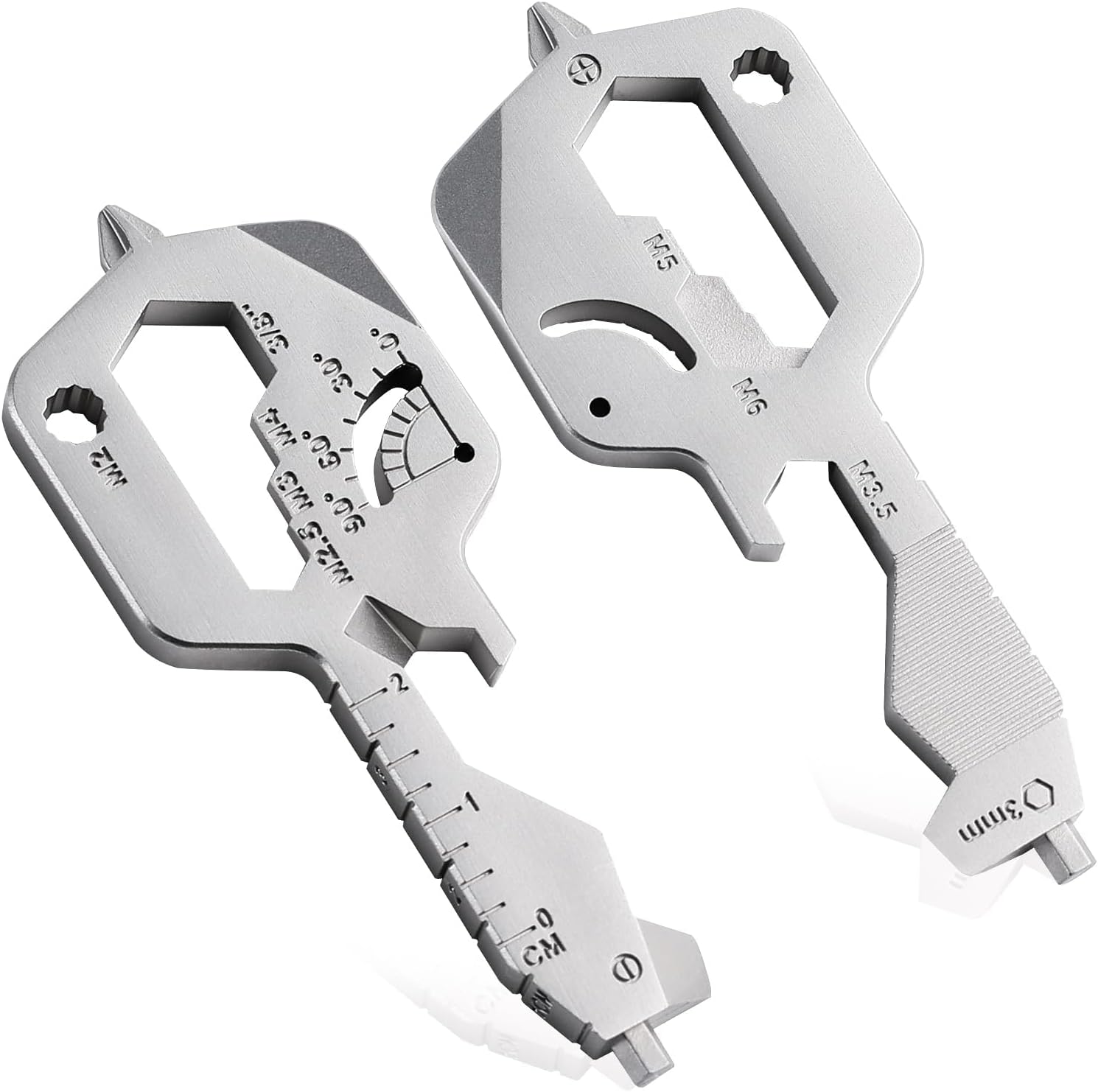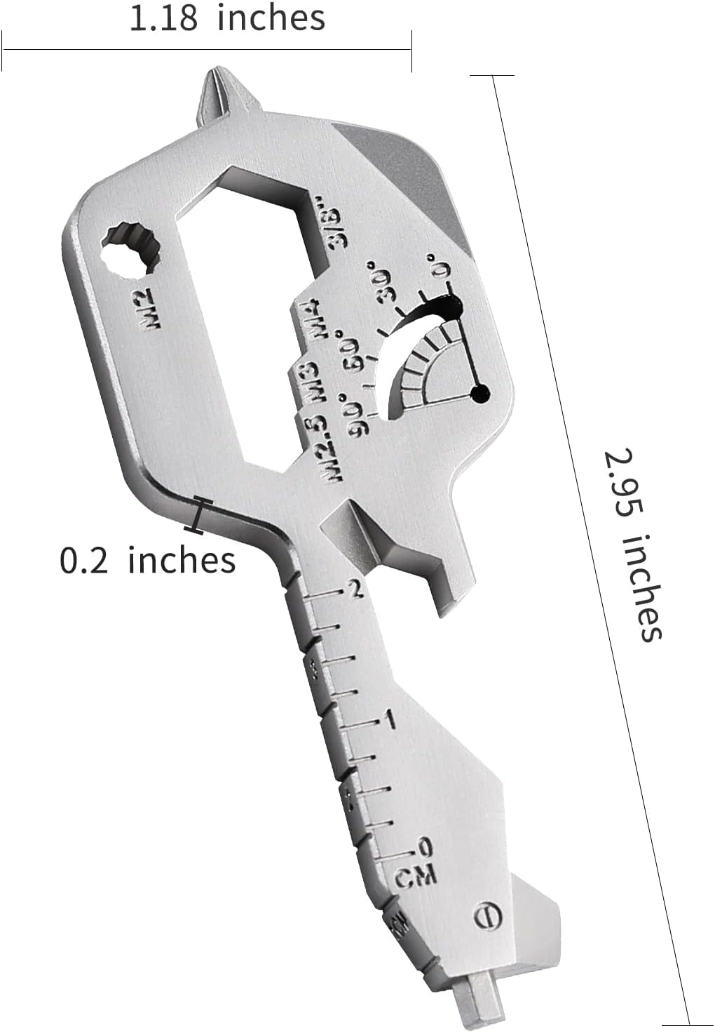 20 IN 1 Tool: Groninog key shaped multipurpose tool providing instant access to 20 different tools, including Hex Wrench, Pry Bar, Box Opener , Wire Stripper, Cord Cutter, Nail File, Depth Gauge, Wrench, Box Spanner, Ruler, Protractor etc.