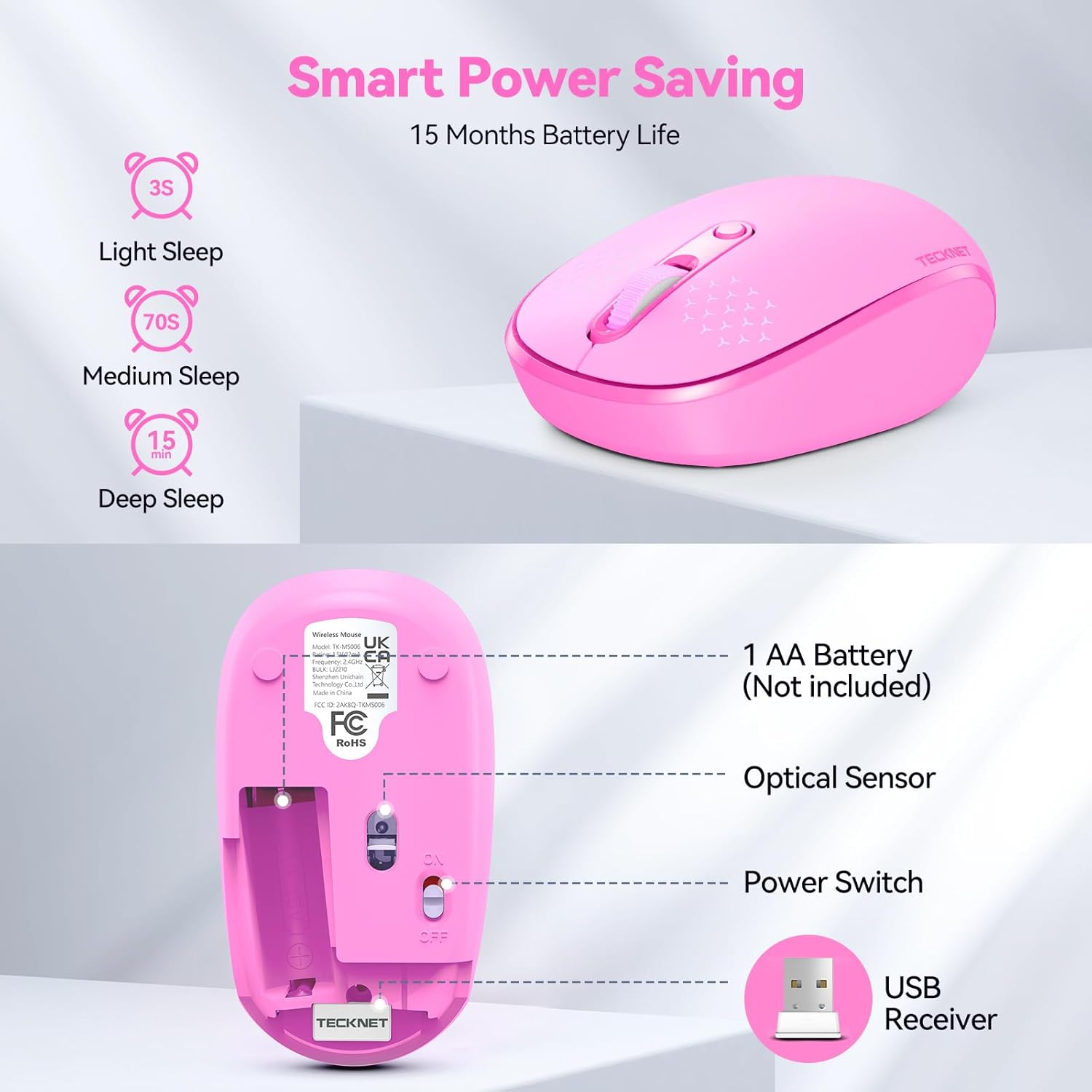 TECKNET Wireless Mouse for Laptop, 2.4G Quiet Computer Mouse with USB Receiver, 4 Buttons Portable Cordless Mice for Chrom...