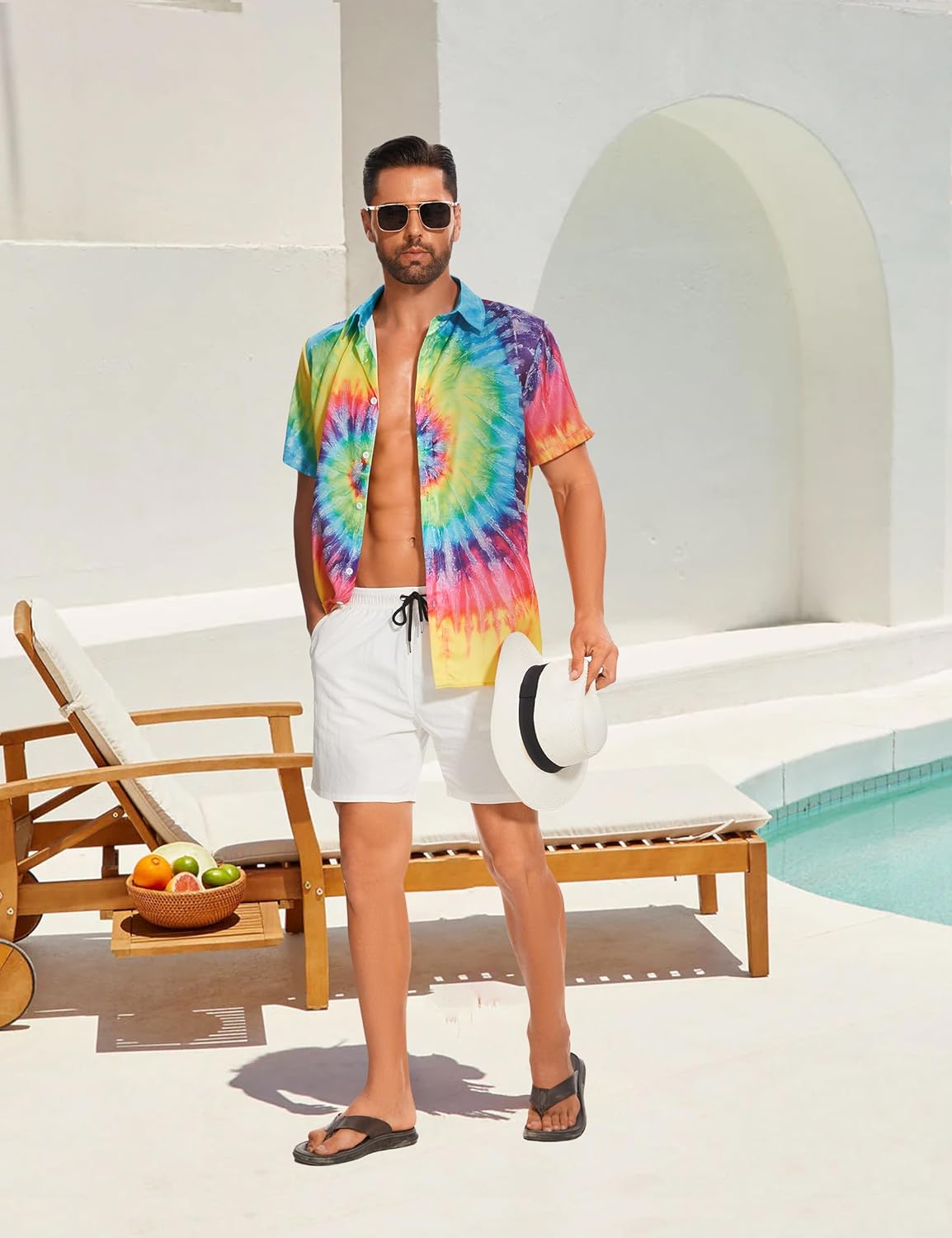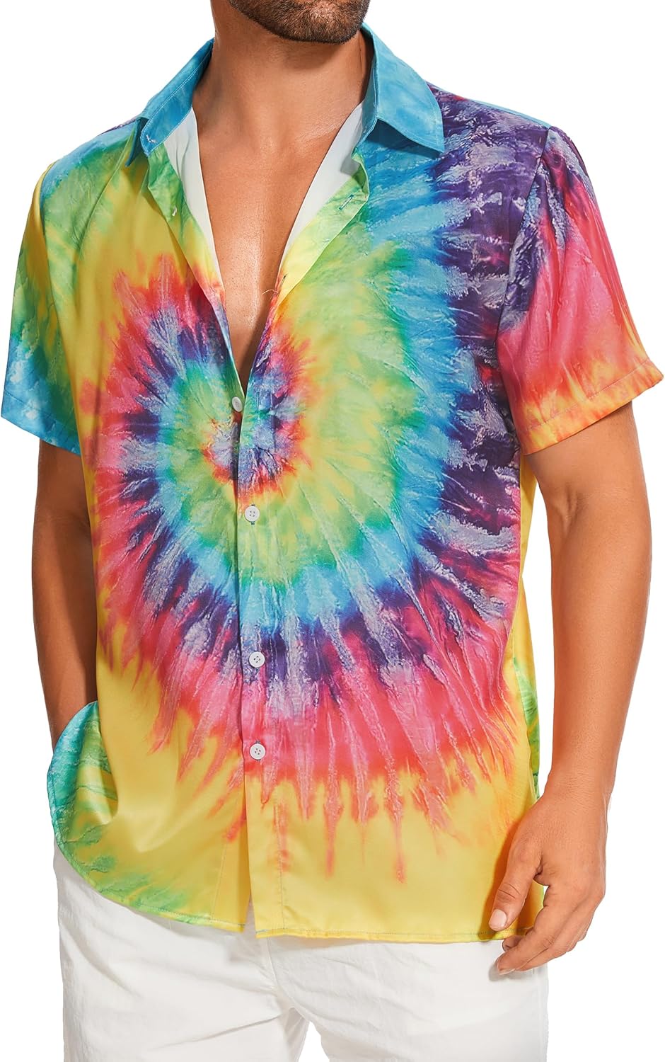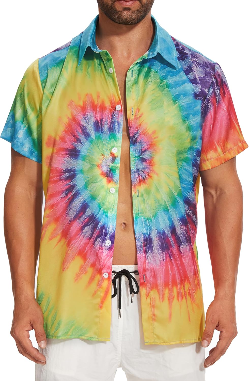 Demoking Vintage Shirts for Men Tie Dye Hippie Funny Hawaiian Shirt Button Down Shirts