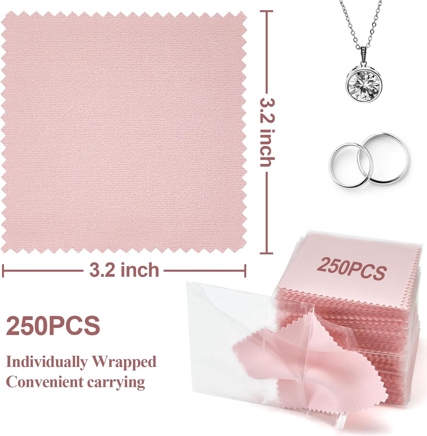 250PCS Jewelry Cleaning Cloth, Professional Polishing Cloth Individually Wrapped, Pink Silver Polishing Cloth for Jewelry ...