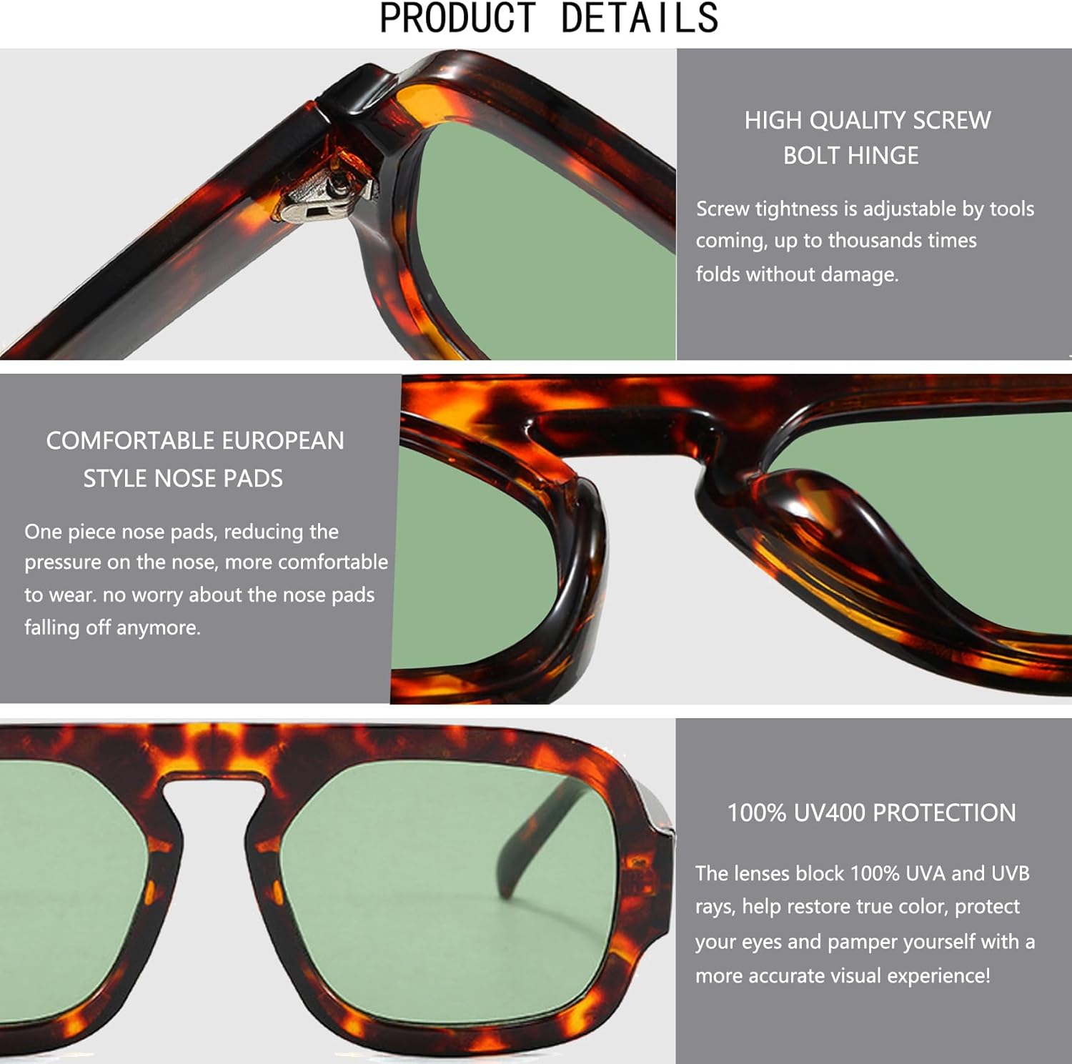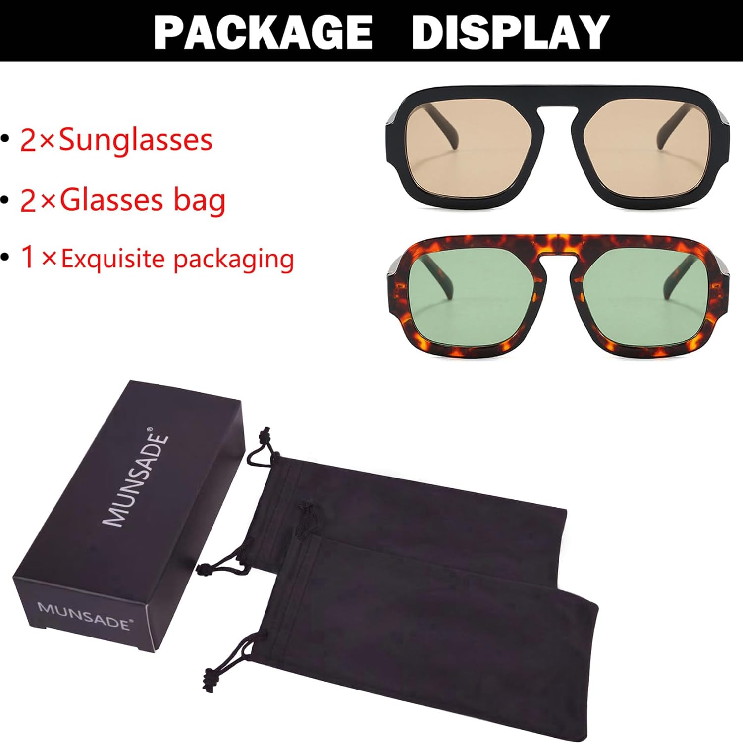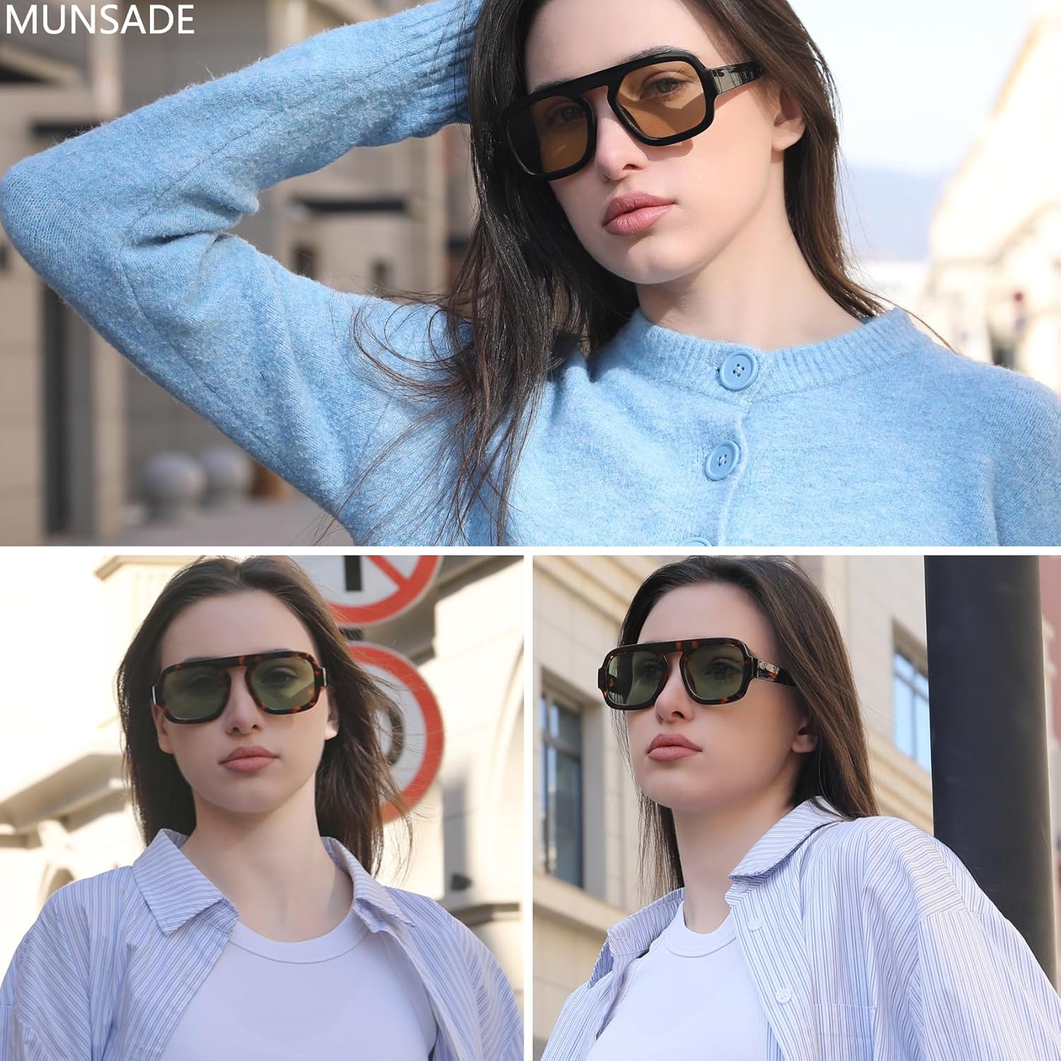 MUNSADE Trendy Square Aviator Sunglasses for Women Flat Top Designer Stylish Frame Sun Glasses Vintage Shades