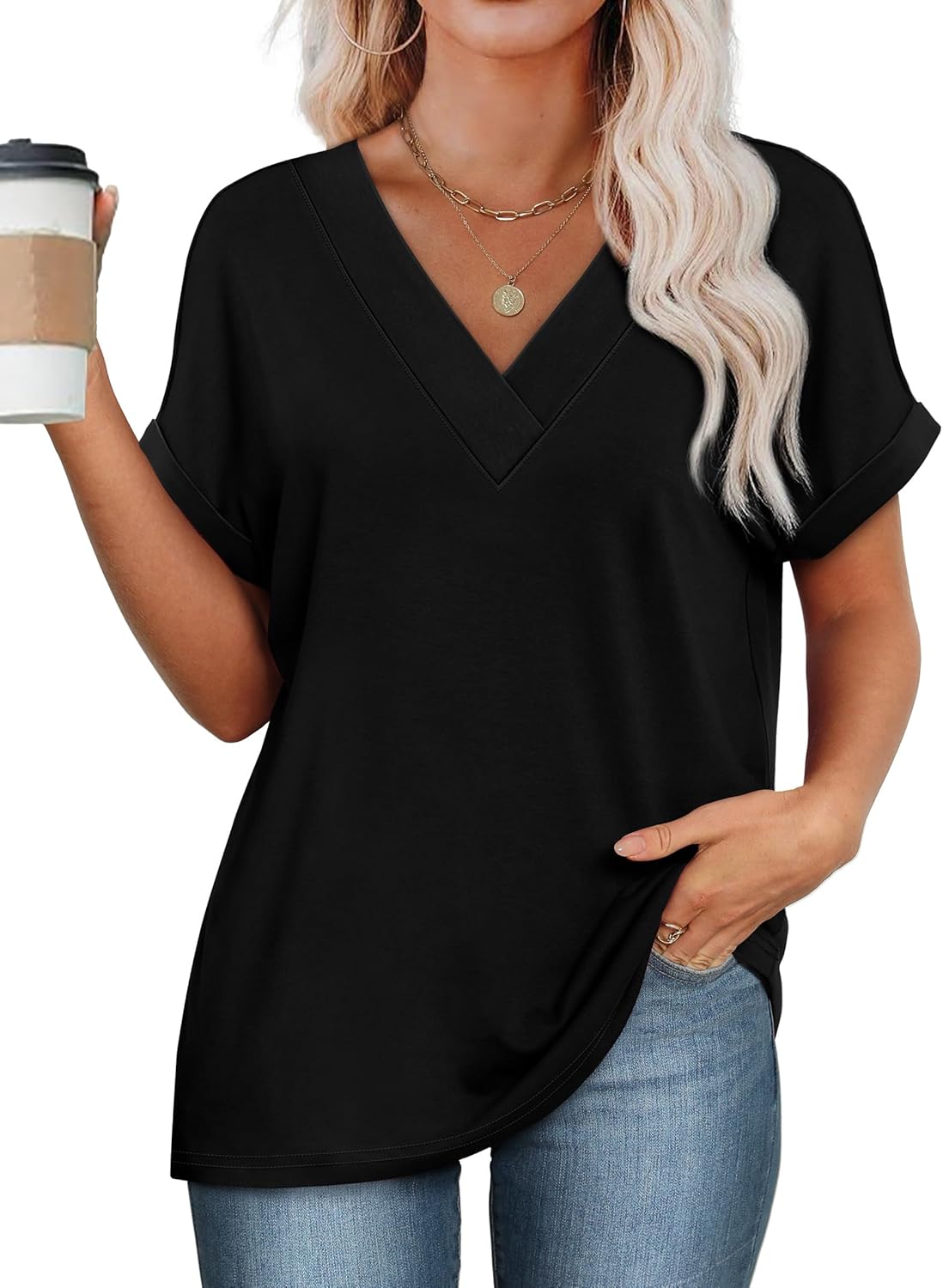 Feature: The basic shirts, classic v-neck, rolled sleeve, add a unique design to the summer tops, making the basic t-shirts more fashionable.