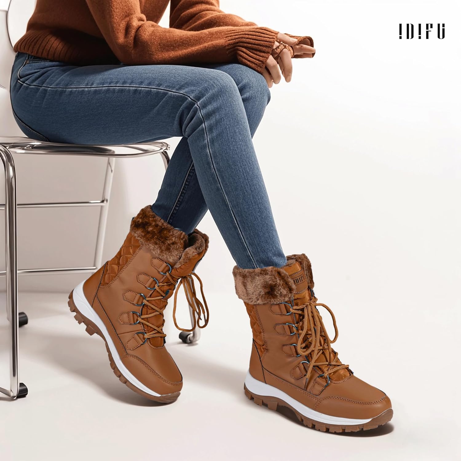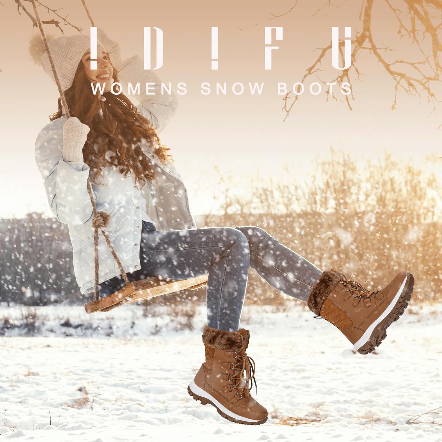 IDIFU IN2 Womens Snow Boots Winter Boots for Women Waterproof Comfortable Warm Insulated Non-Slip Outdoor Boots Fashion Ca...