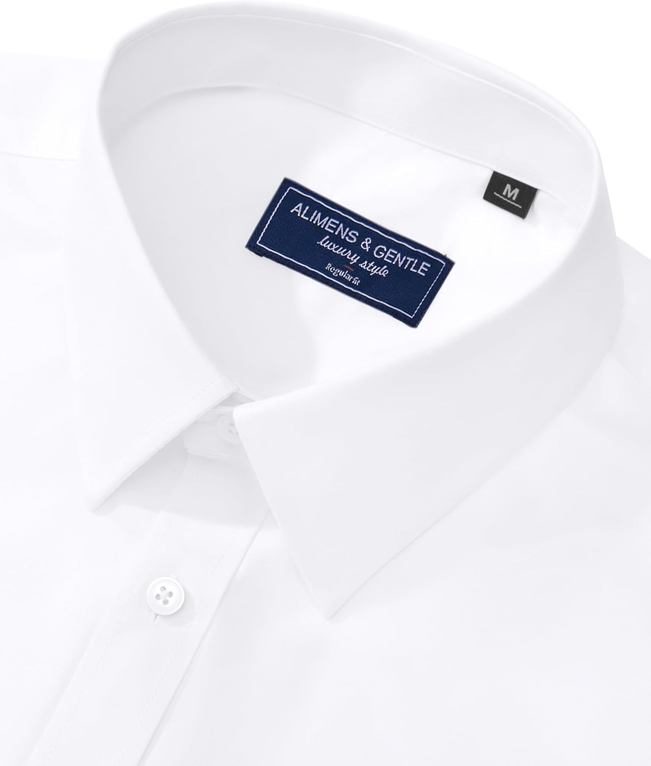 Alimens & Gentle Men's Dress Shirt Regular Fit Stretch Stain Shield Long Sleeve Solid Business Wedding Button Down Shirts