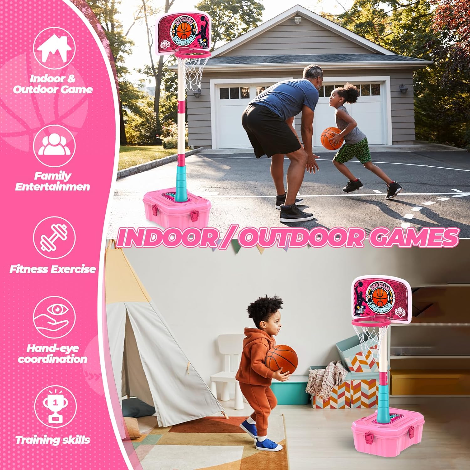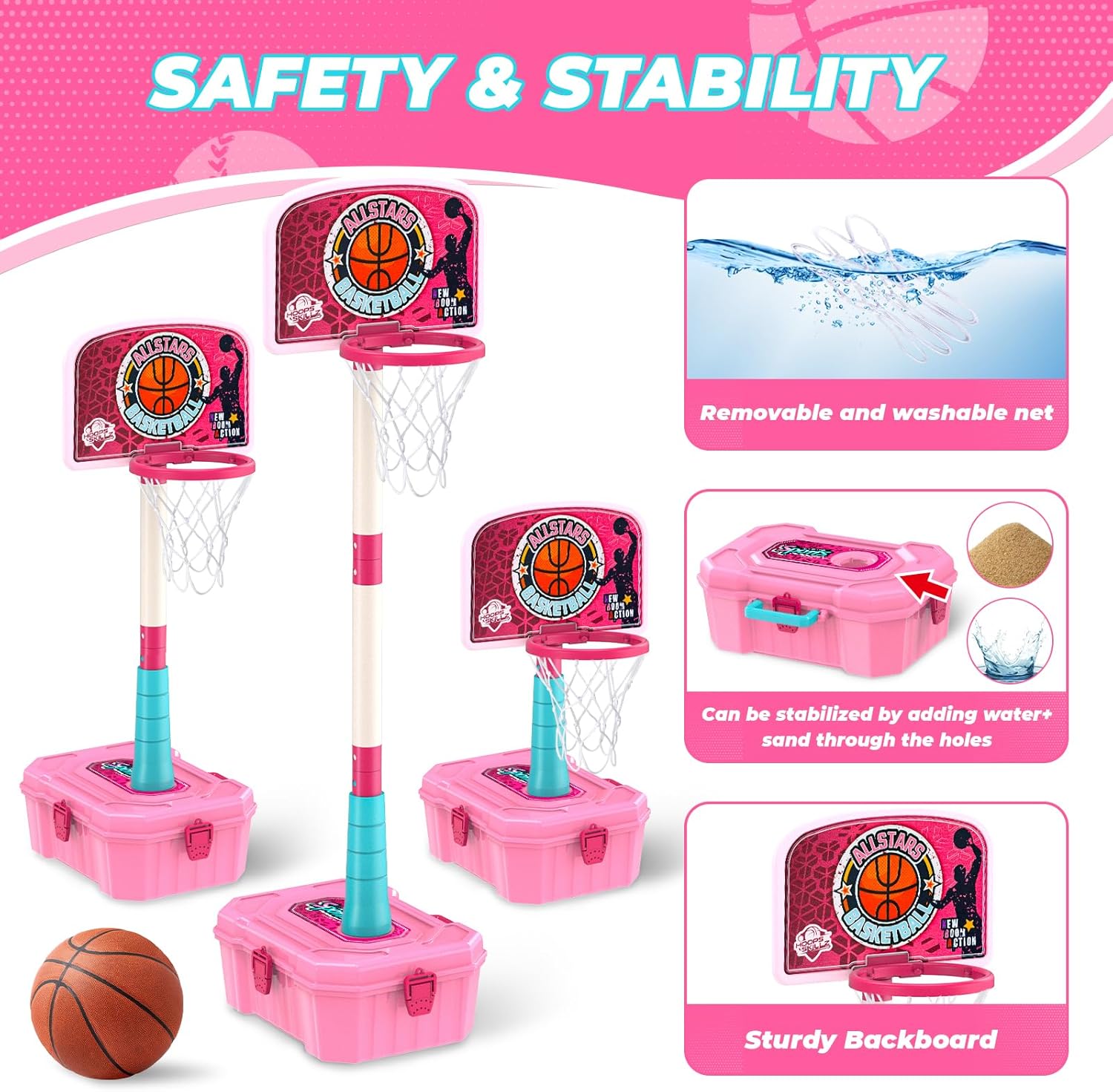 Adjustable Toddler Basketball Hoop: Our basketball hoop indoor is great for kids.The height can be adjusted from 21.6" to 47.2", which is perfect for growing kids 3 4 5 years old. Raise the height to increase the difficulty as your kids grow. Encourages preschoolers and toddlers to play independently while working on balance and improving their hand-eye coordination