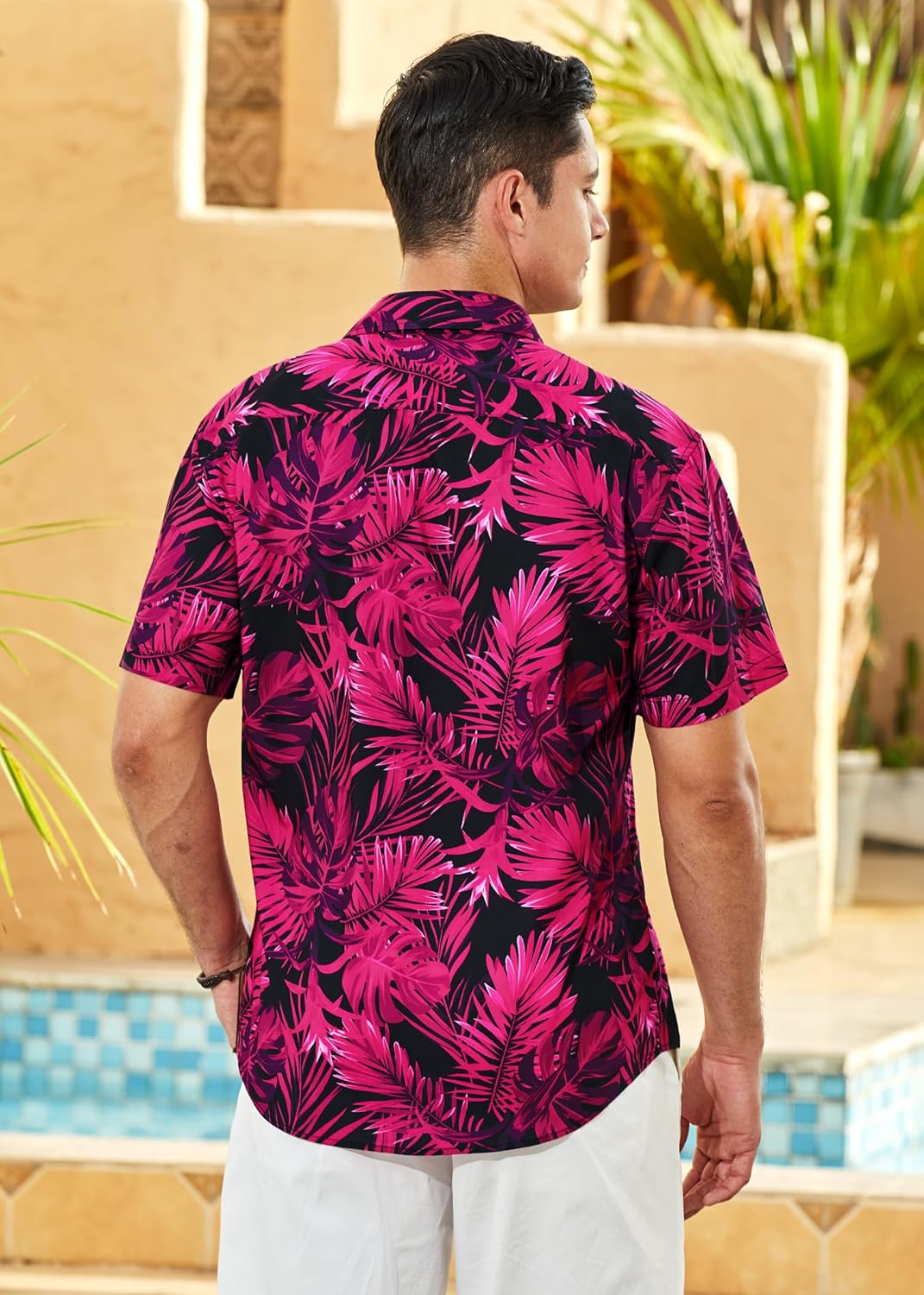 【Occasions of Tropical Shirts】 Funky Hawaiian floral print shirt suitable for casual wear, summer beach, vacations, party, fishing, sailing, BBQ, surfing etc. Floral aloha short sleeve shirt match with t-shirts or vest for a casual look. Unisex;It is suitable for people of any age.