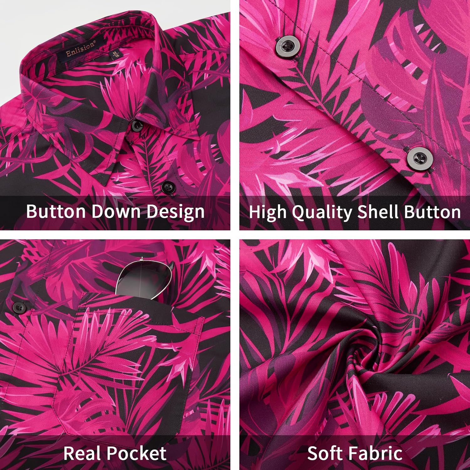 Enlison Men's Hawaiian Shirt Short Sleeve Casual Summer Beach Aloha Shirt Floral Button Down Tropical Hawaii Shirts
