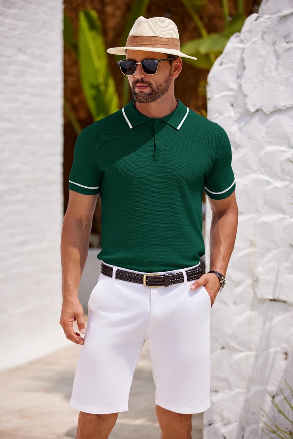 Various Matching ---- You can match this resort textured knitting polo shirt with casual or dress pants, jeans, chinos, wear it under a jacket, blazer,or trench coat for a casual or formal look.Nice classic short sleeve polo golf shirt will never go out of style.