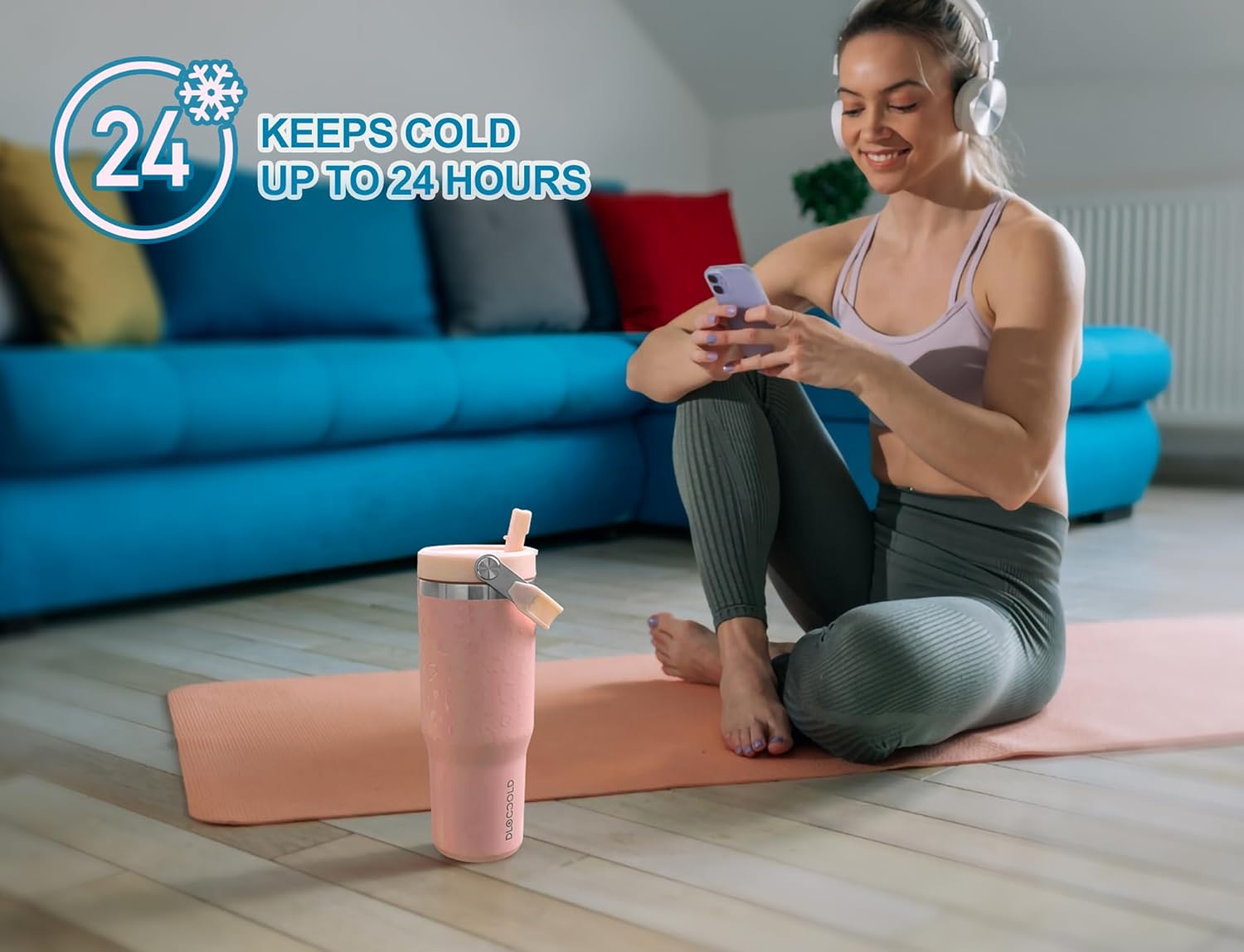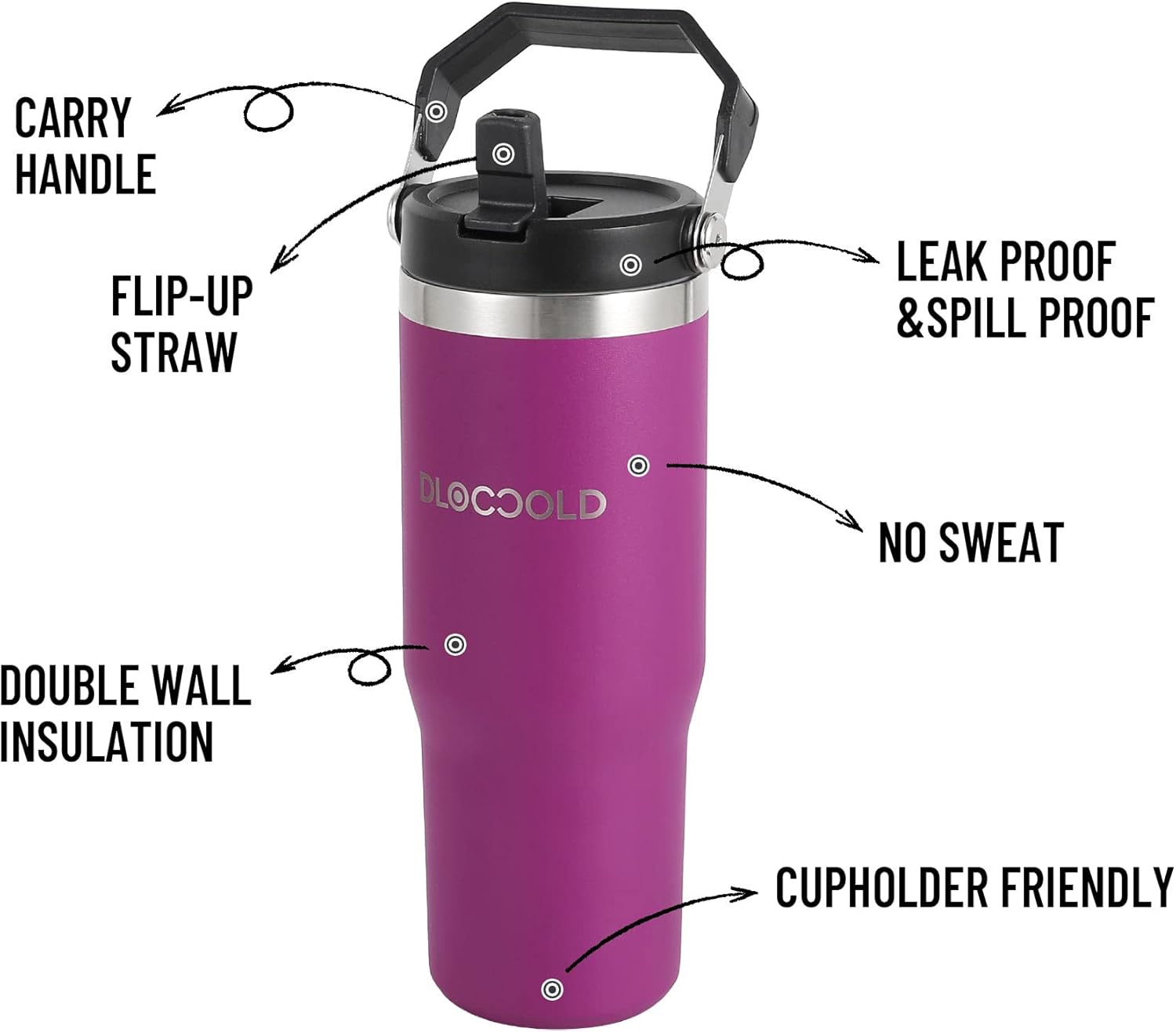 DLOCCOLD 30 oz Stainless Steel Tumbler with Flip Straw & Handle, Insulated Leak Proof Water Bottle with Sip Lid for Home, ...