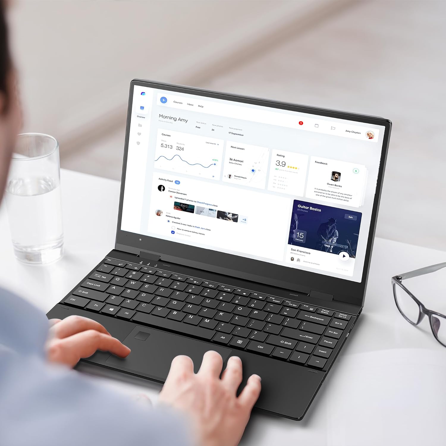 The ergonomic backlit keyboard with comfortable key stroke. Fingerprint reader for quick opening of the device and security.