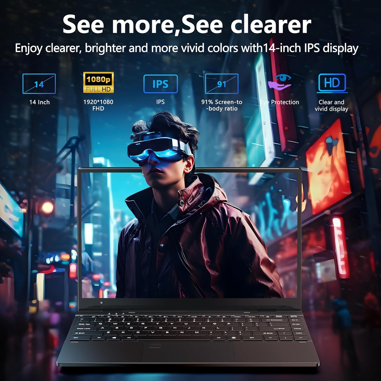 14.1 inch FHD display (1920*1080) with 0.2 inch bezel and 91% screen-to-body ratio.