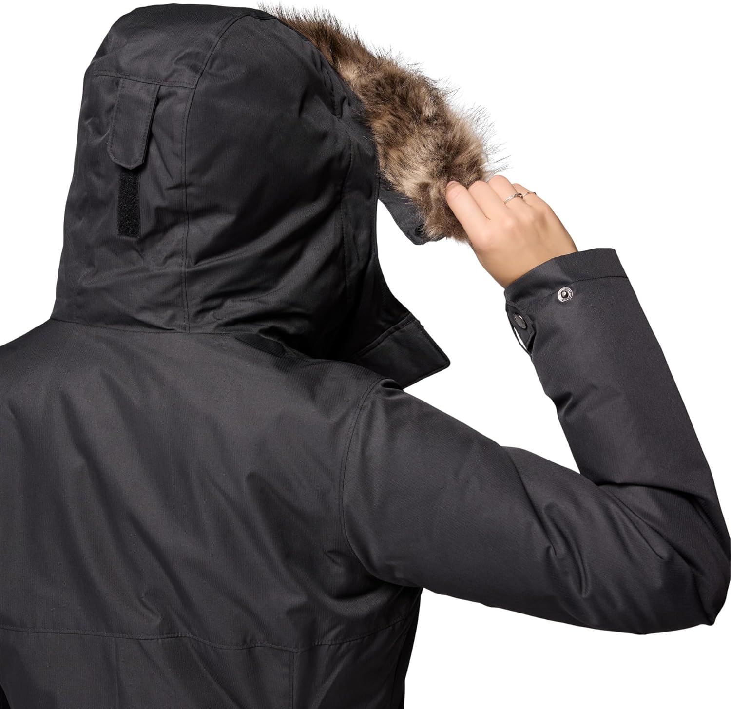 100% SYNTHETIC DOWN INSULATION: The down-style baffling is flexible at all the right points, controlling loft, versatile fit, and maximum warmth. The lush faux-fur trimmed hood protects the head and face while containing your natural body heat.