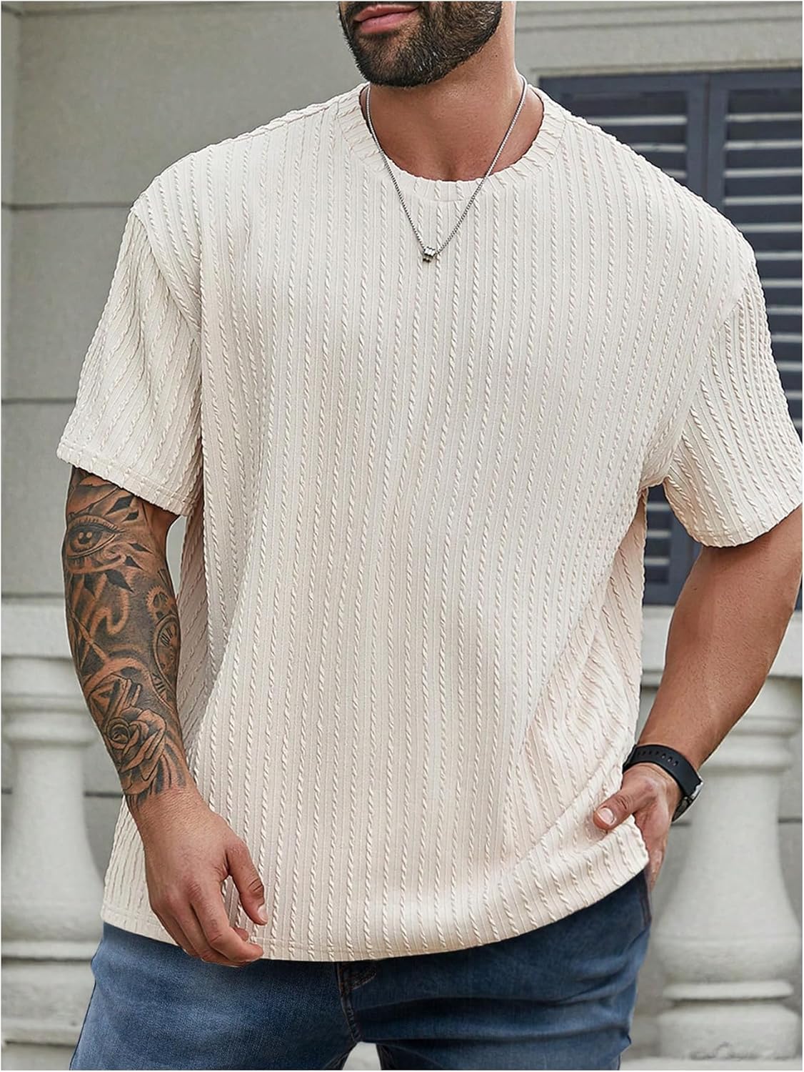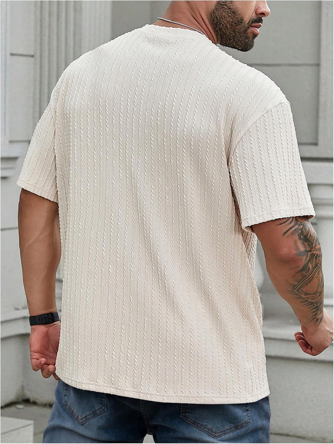 Features: Big and tall t shirt, plus size, round neck, short sleeve, texture ribbed knit, loose fit, casual and lightweight style