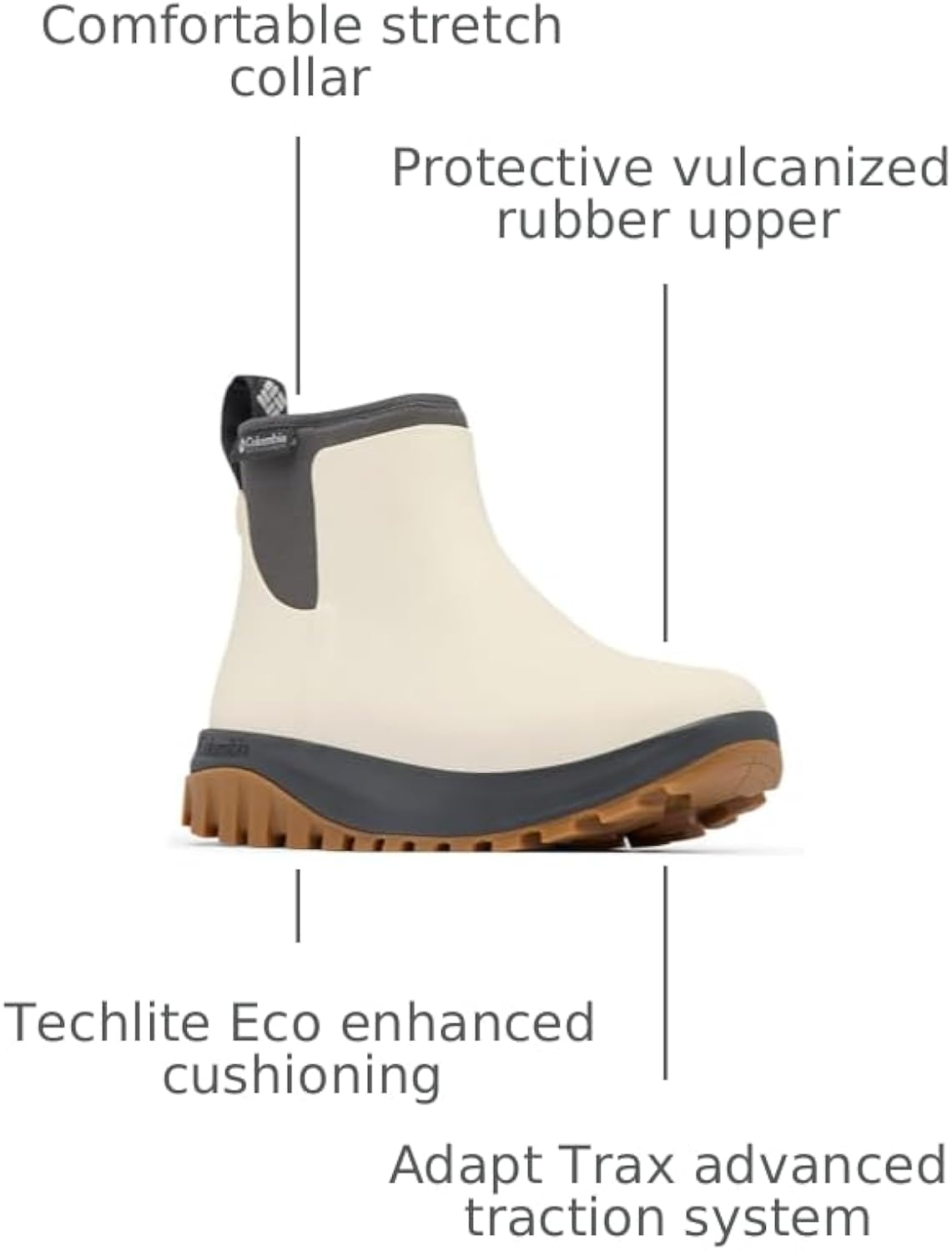 RAIN READY: These boots feature a protective vulcanized rubber upper, stretch collar, and rugged outsole for wet, slushy conditions.
