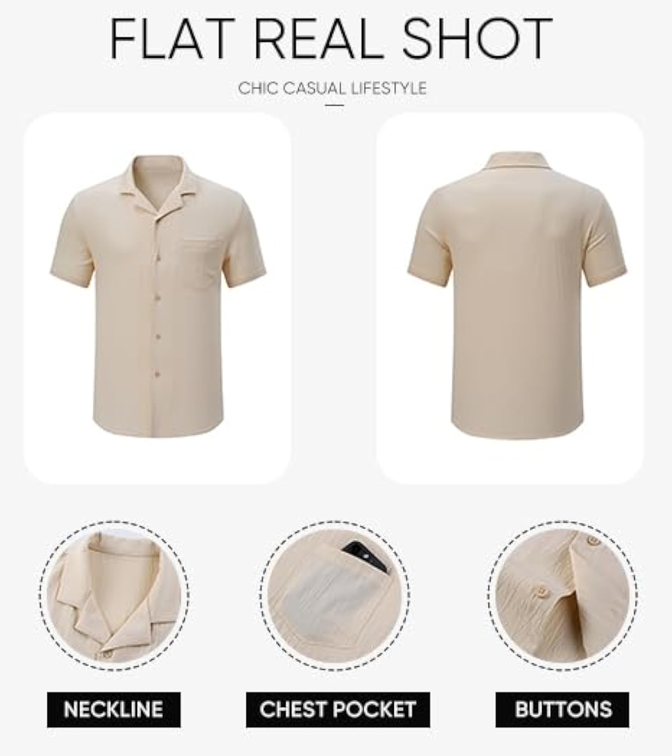 Cuban Guayabera Design:The JMIERR men's Guayabera shirt features short sleeves, a wide collar, button closure, and a loose fit design. We offer solid color shirts in a variety of colors, with a chest pocket for convenient storage of small items. The classic wide collar and button closure front design, along with the unique Cuban design, make this shirt even more stylish and timeless.