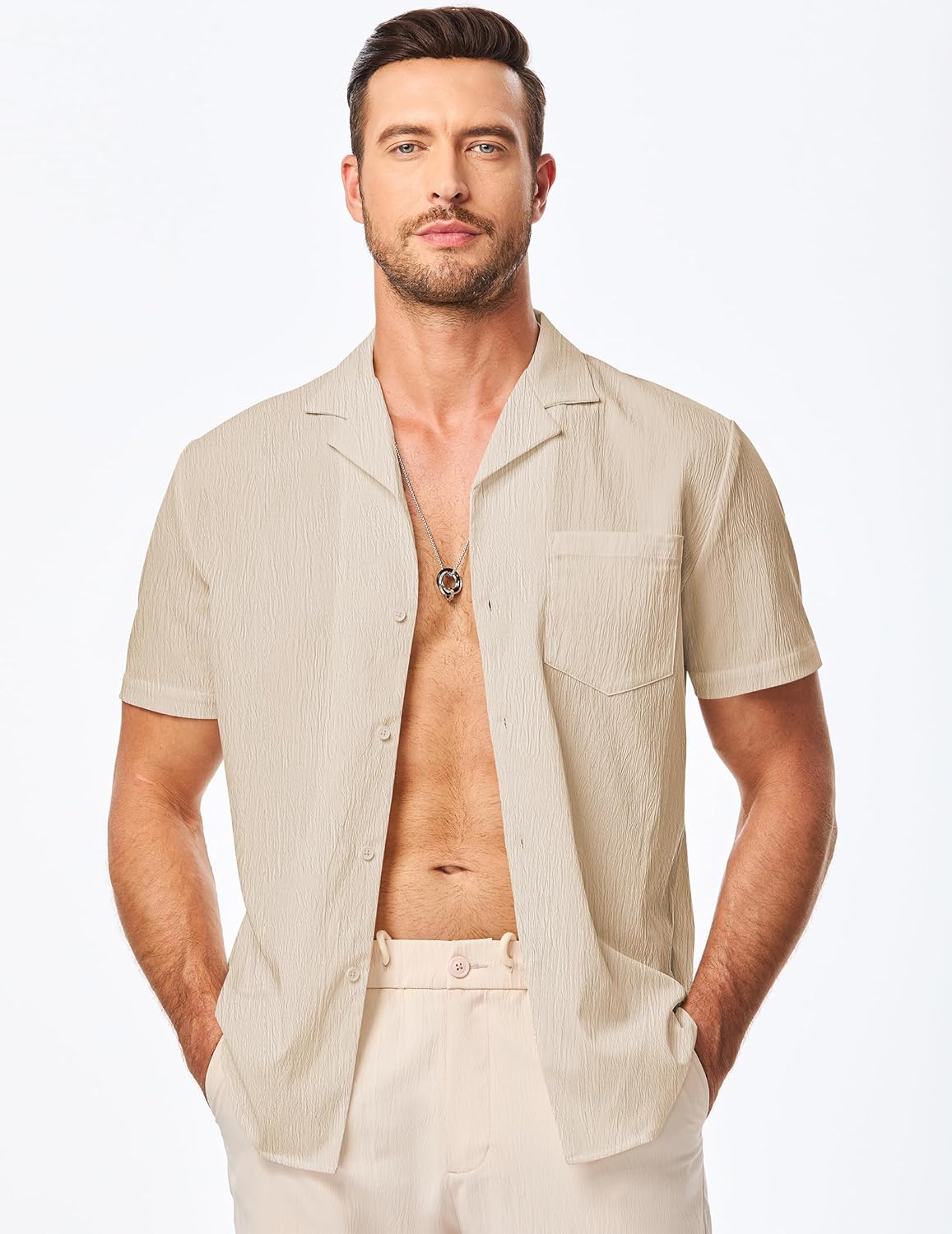 Easy to Match:This men's summer short sleeve shirt pairs well with any pants; Wear it with trousers for daily wear, or tuck it into pants for a business casual feel. Paired with shorts, it's perfect for both vacation and leisure; In short, this shirt can create your own fashion sense no matter what it is paired with.