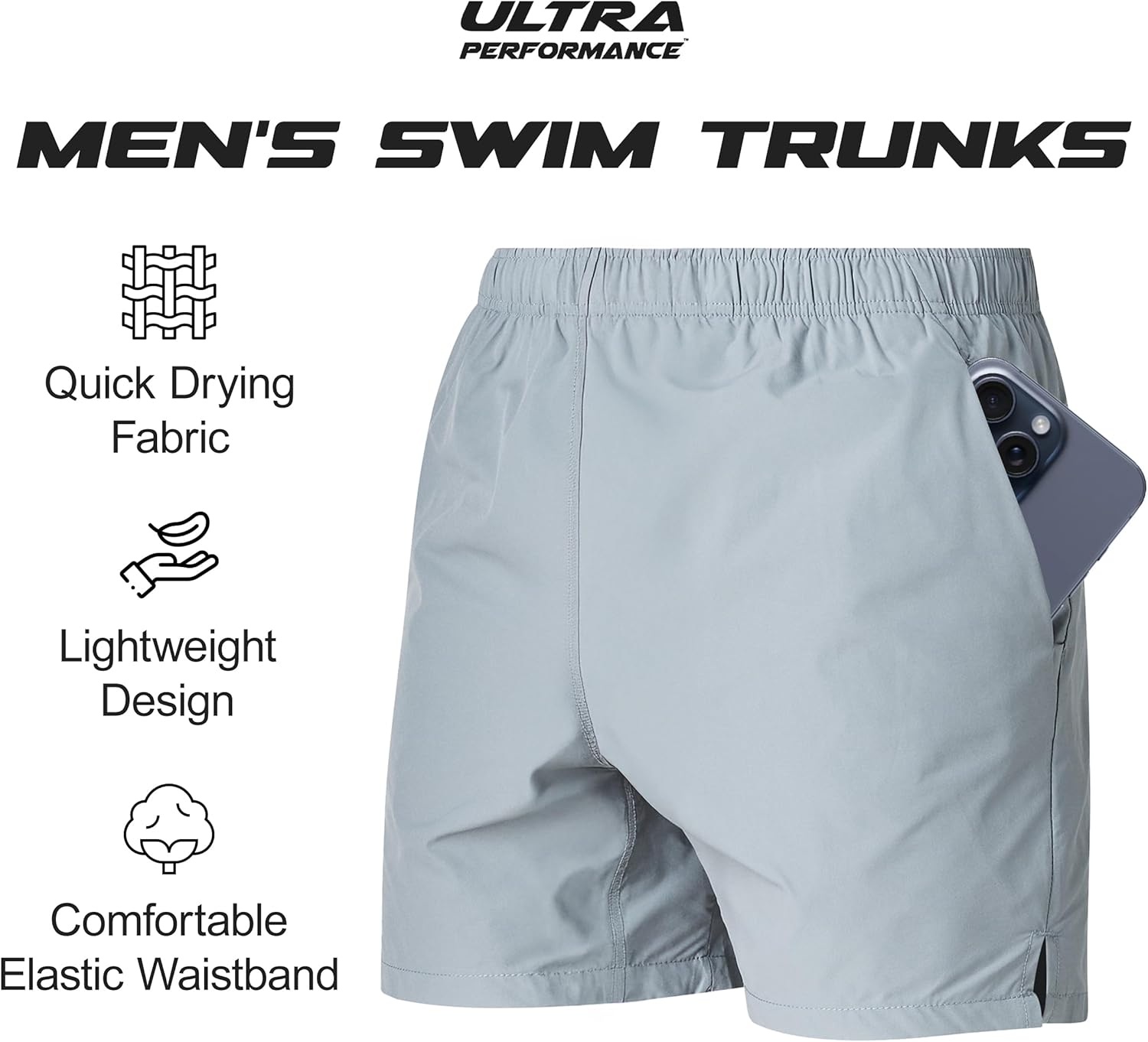 High-Performance Fabric: These mens board shorts are made from high-count material for extreme quick drying and unmatched comfort. Stay fresh and dry with these swimming trunks for men no matter how active your day gets.