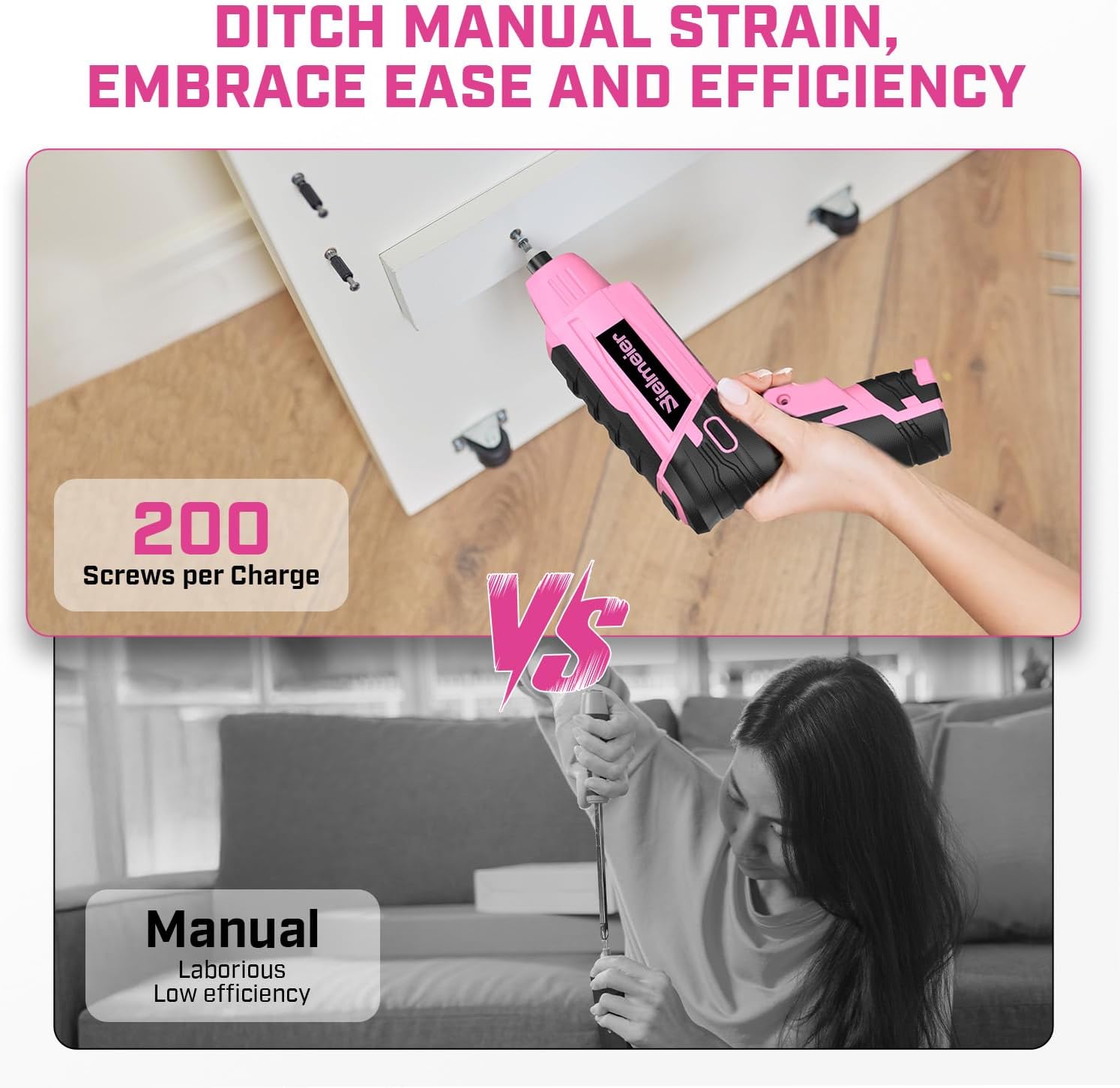 Super Easy to Use: Designed with simplicity in mind, this screwdriver is lightweight, easy to handle, and perfect for one-handed use. Plus, the built-in LED light helps illuminate those hard-to-see areas, so you’ll always have visibility, even in the darkest spots!