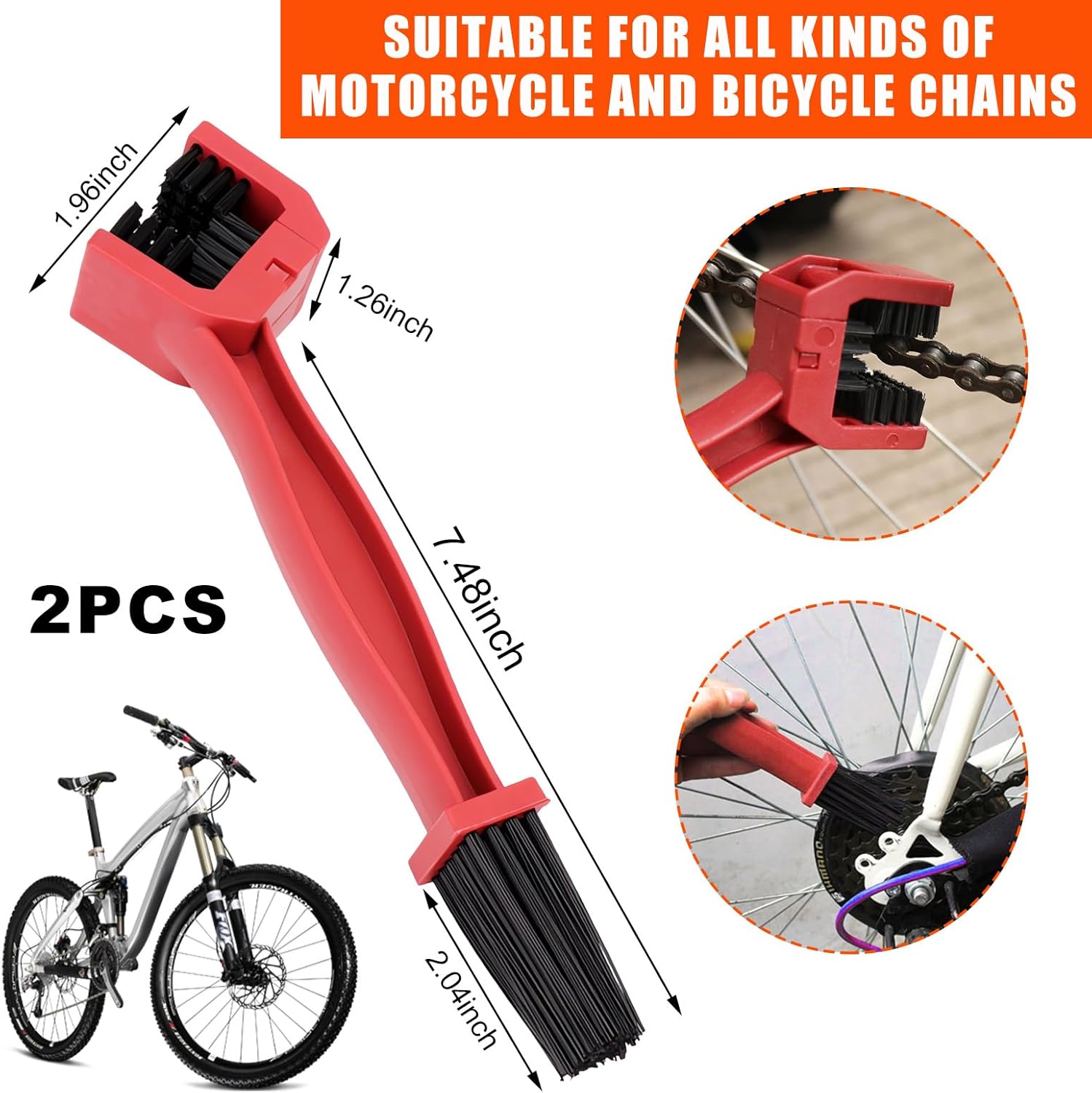 Suvnie 2 PCS Motorcycle Chain Brush, Gear and Chain Cleaning Tool with Double-Ended Brushes, Chain Maintenance Cleaning Sc...
