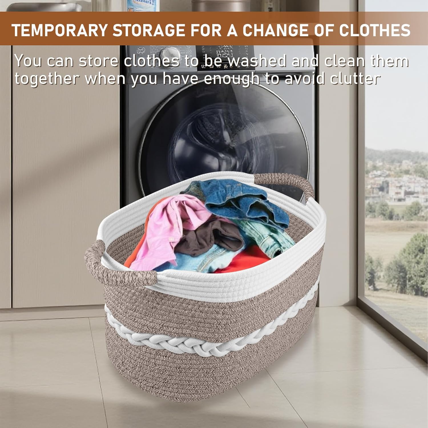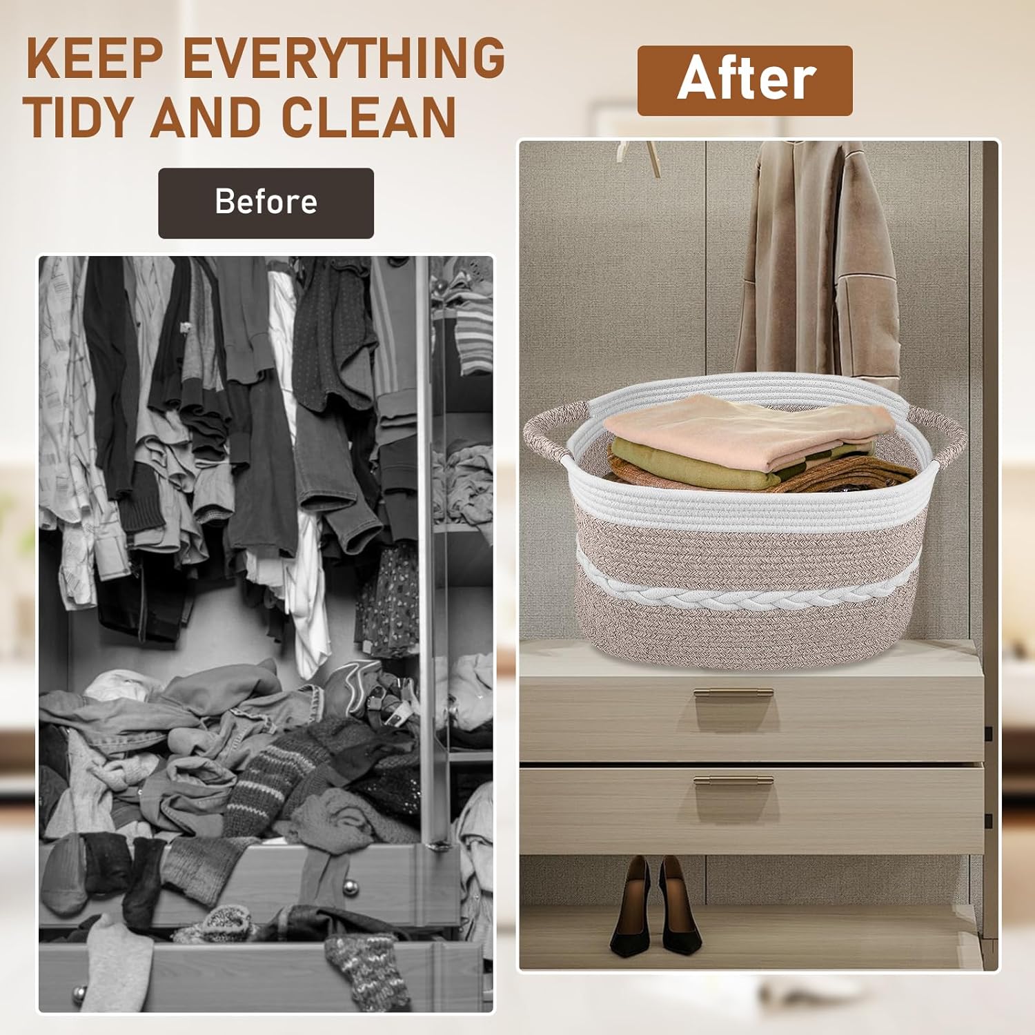【Practical Design】The braid design is very unique, and our woven basket is equipped with sturdy handles for easy use. Also it can be folded to save space when not in use. (Wash Care: It can be washed by hand or machine with gentle detergent and mode)