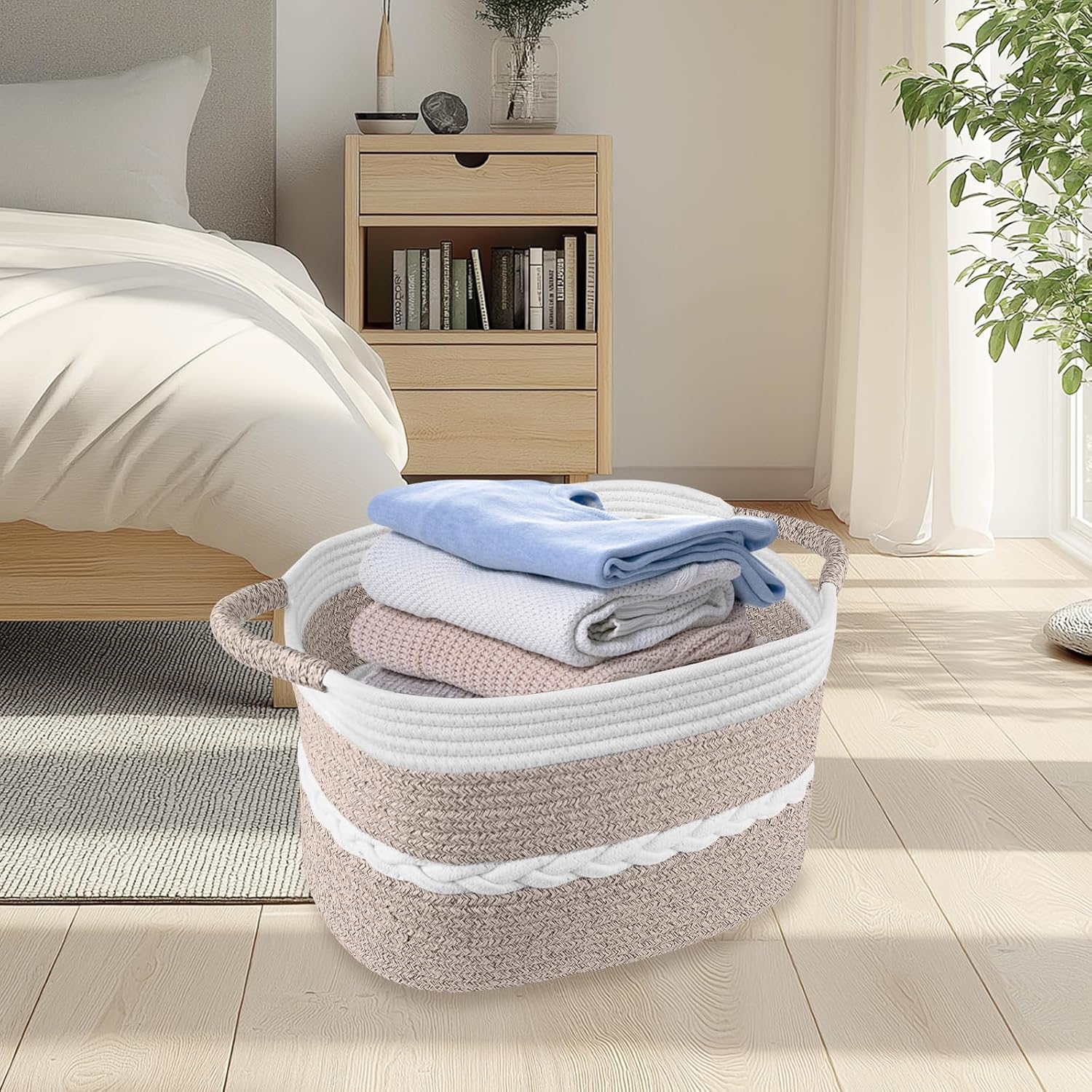 Cotton Rope Storage Basket, Rectangle Woven Baskets with Handles for Shelves, Home Organizer Storage Bins Cubes, Toy Laund...