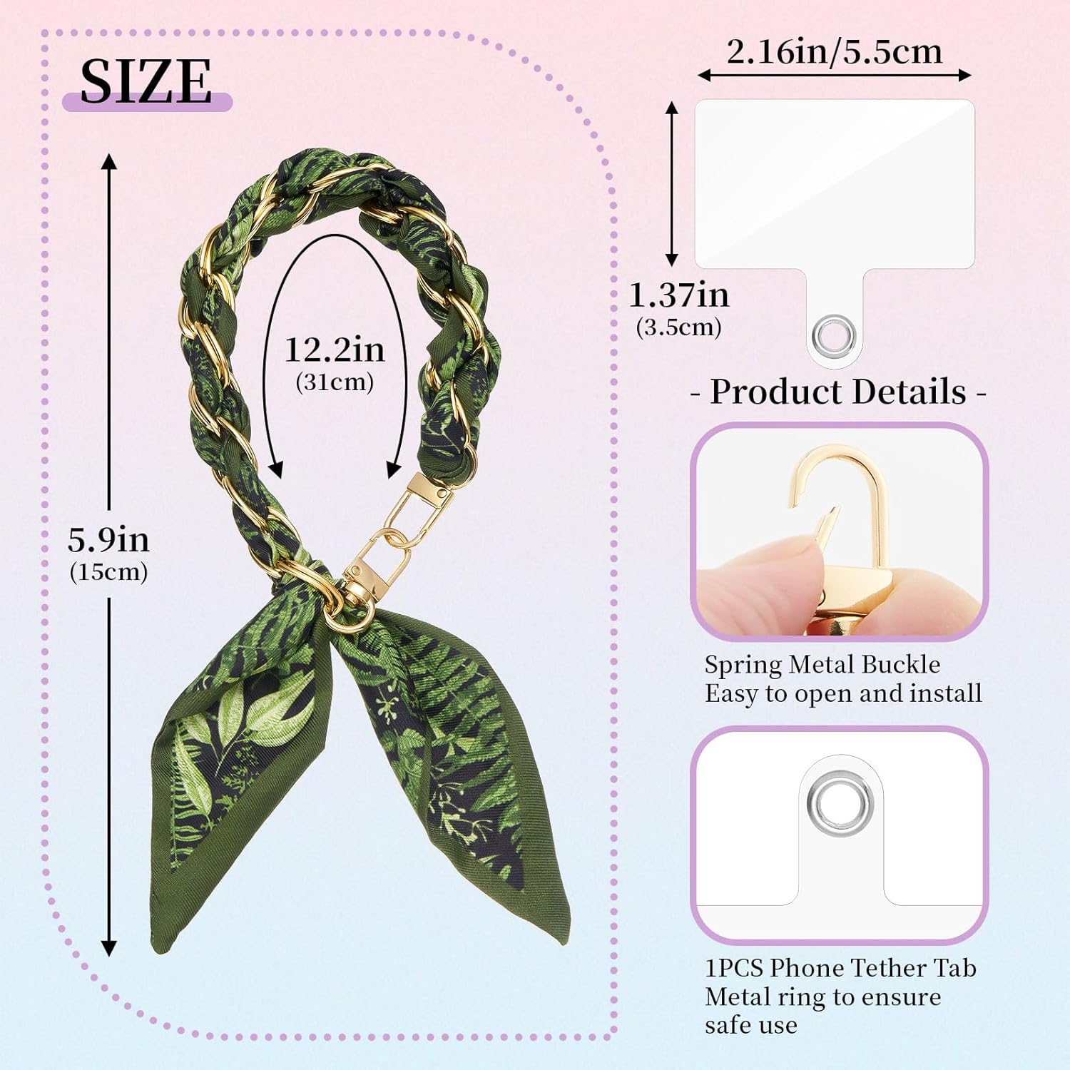 DURABLE MATERIAL - The chain strap of the scarf phone chain is carefully crafted with high-quality alloy material, which is sturdy and durable, and not easy to break or deform; the like silk scarf part is made of silky polyester material, which feels soft and comfortable, so that you will not scratch your skin when holding it