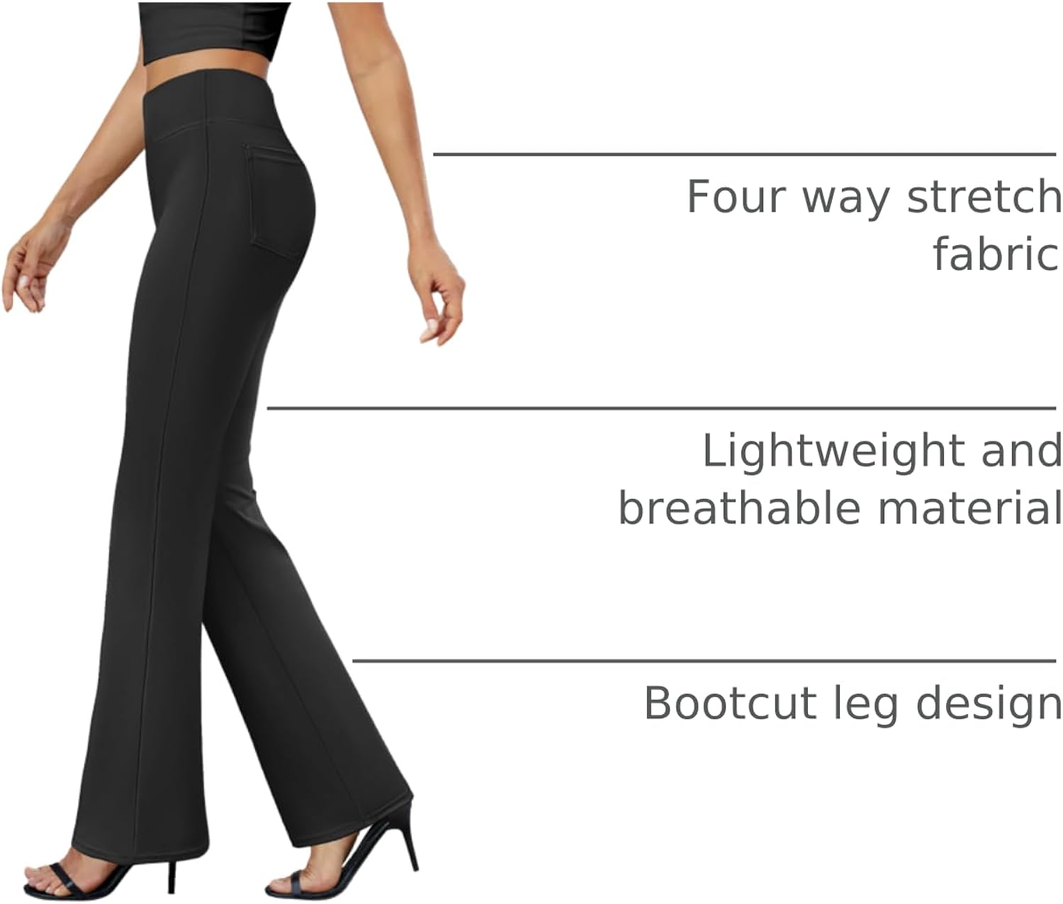 Bootcut Leg Design: These womens slacks are designed with a stylish bootcut silhouette that elongates the legs and allows for greater freedom of movement. The extra space around the calves and ankles makes bending, squatting, or sitting easier and more comfortable, providing all-day wearability