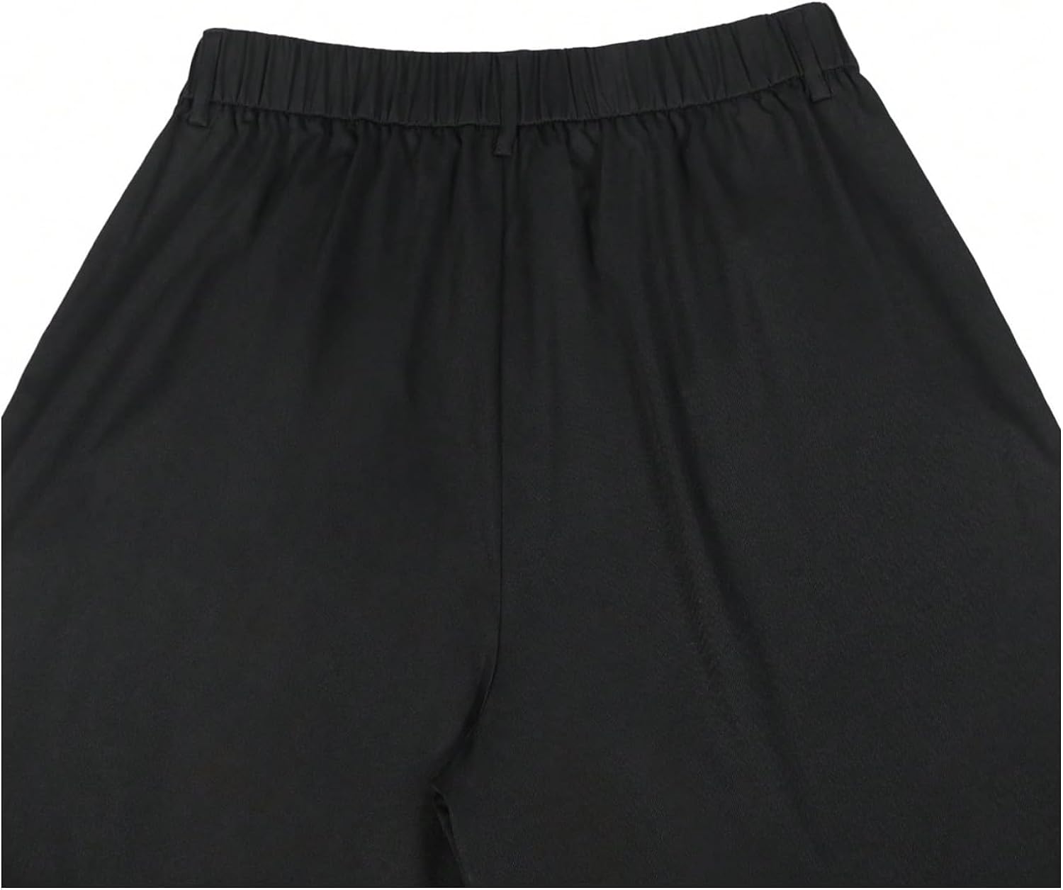 Features: Pleated detail, zipper fly closure, solid color, wide-leg pants, loose long trousers with pocket