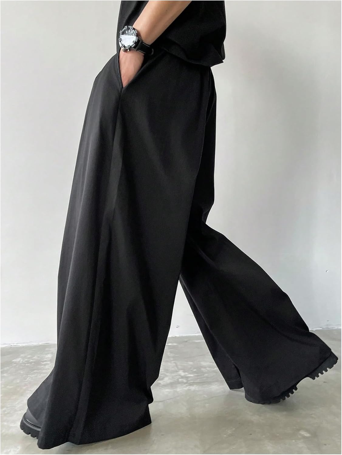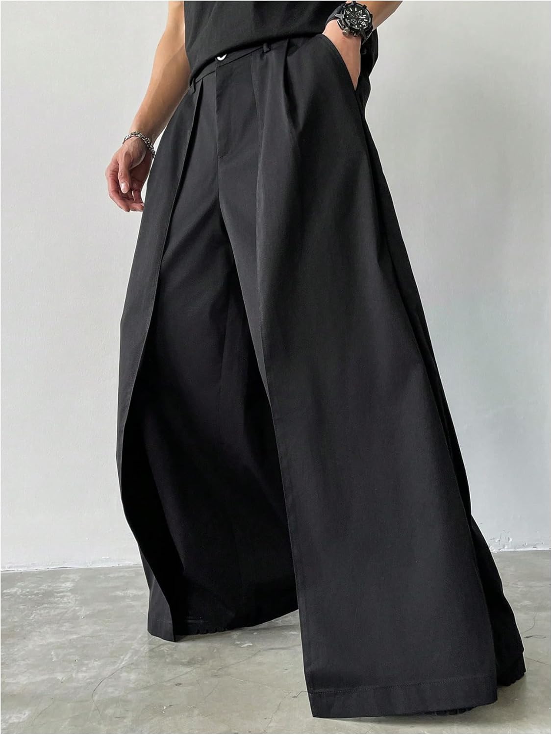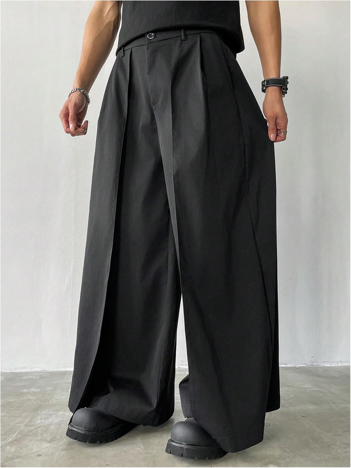 OYOANGLE Men's Baggy Wide Leg Pants Zipper Fly Pleated Trousers Business Casual Dress Pants with Pocket