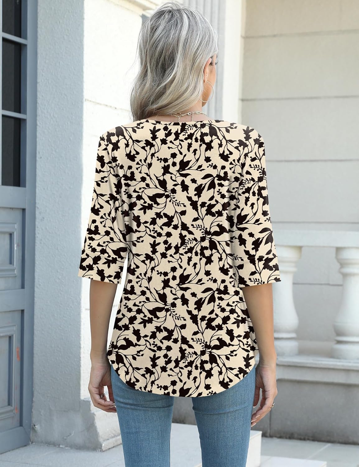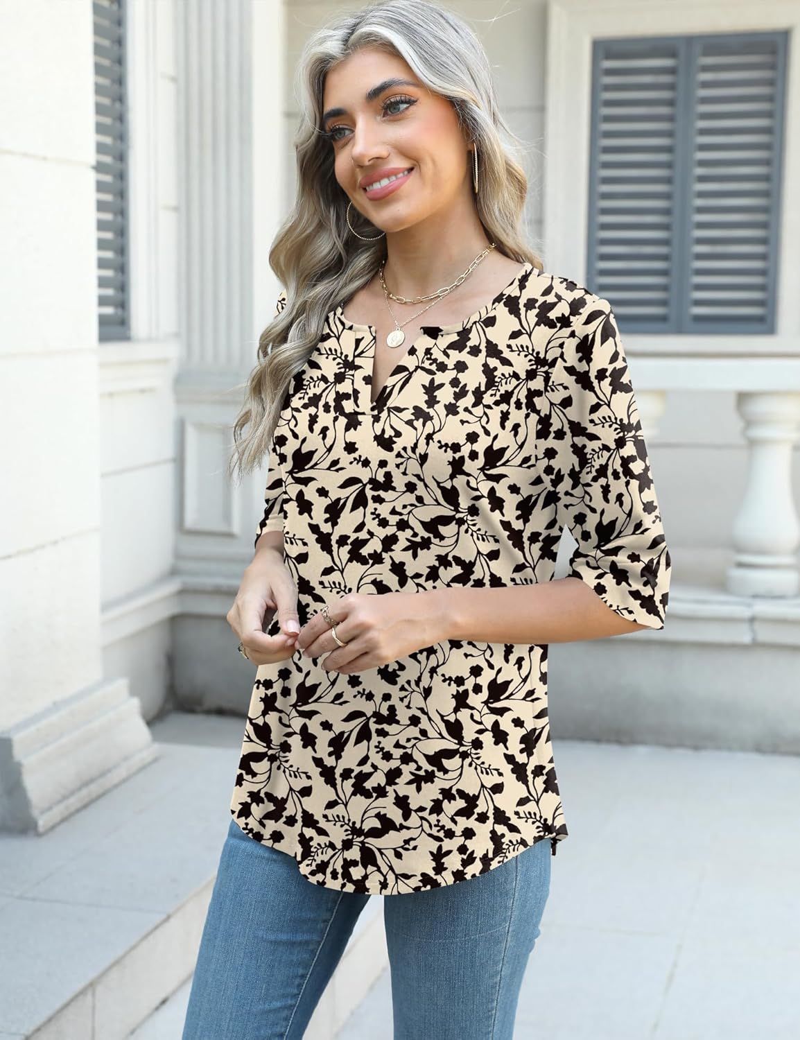 【Unique Design】:The sexy v neck tops make your neck look more slender. The 3/4 length sleeve womens tops with curved hem show the classic and casual style,which is a must-have clothing in your wardrobe.