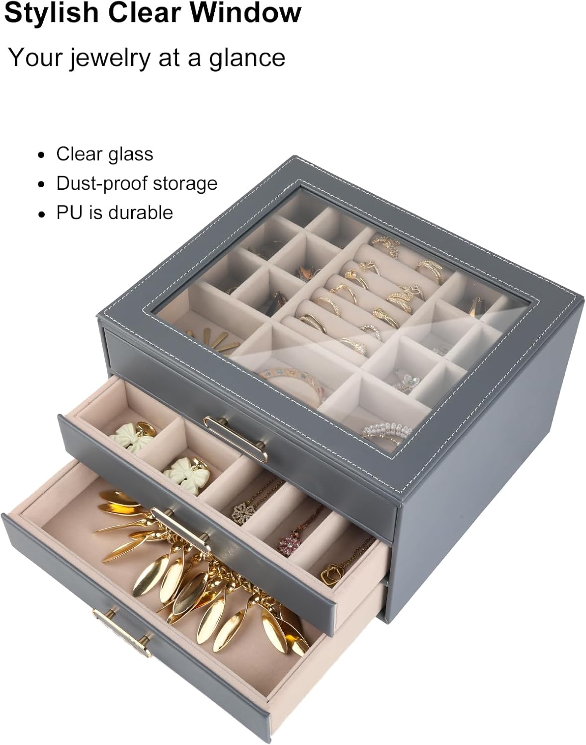 Meticulous Craftsmanship for Lasting Beauty:Experience luxury in the details: smooth-glide drawers with silent magnetic closures, reinforced edges to prevent wear, and precision stitching on the PU leather exterior. The soft velvet interior isn’t just plush—it’s a protective barrier against scratches and tarnish, ensuring your jewelry stays as radiant as the day you got it. A storage solution built for daily use, designed to stand the test of time